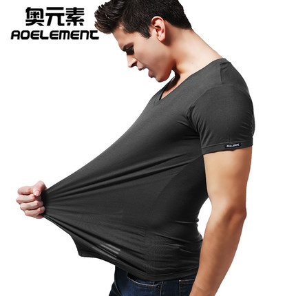 莫代尔夏季圆领紧身男士短袖V领t恤纯色背心体恤修身运动打底汗衫