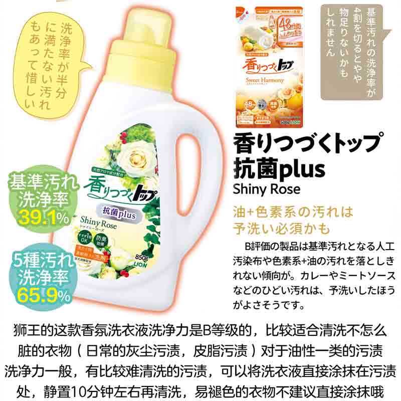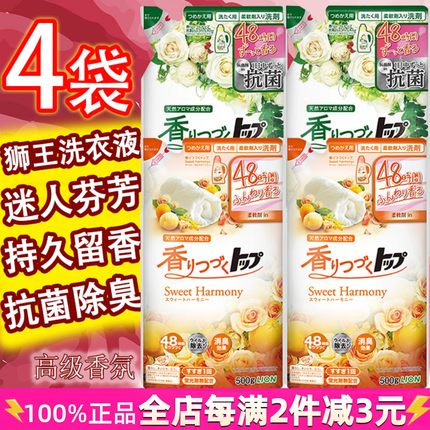日本进口LION狮王香氛柔顺洗衣液留香无荧光剂玫瑰花果香家庭袋装
