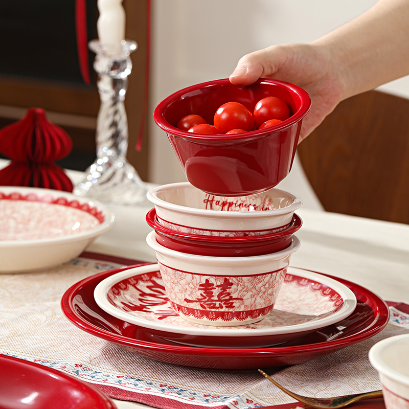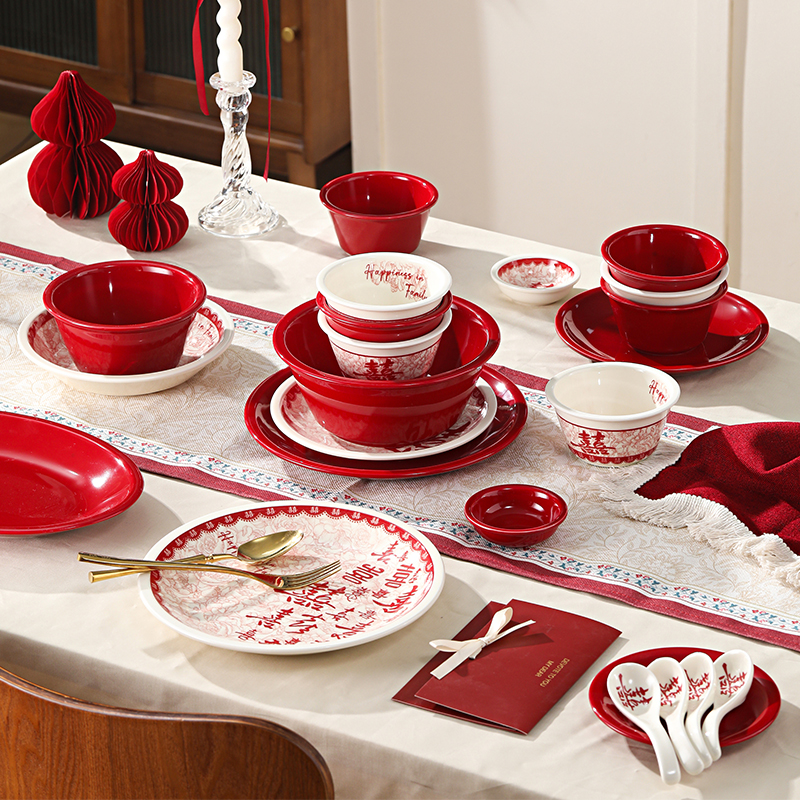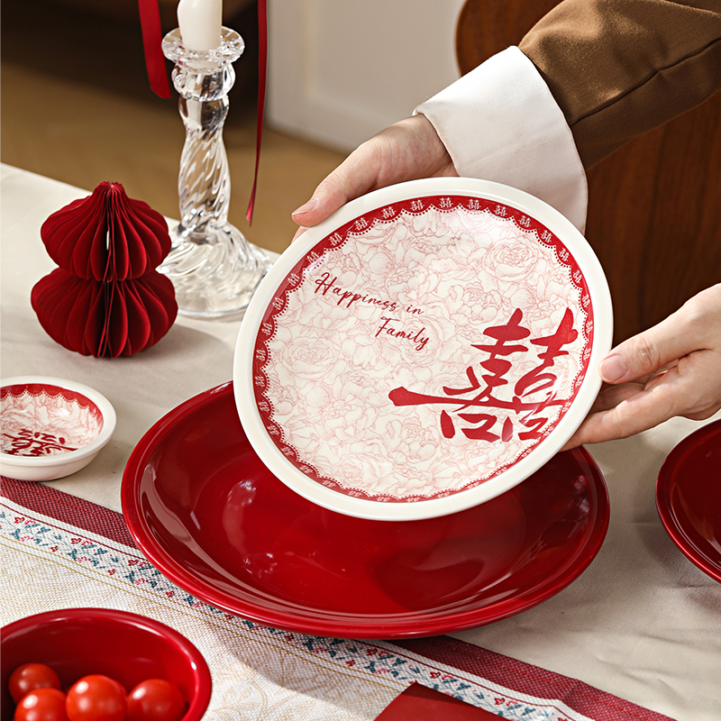 囍碗碟家用餐具套装喜庆高颜值碗盘结婚送礼乔迁礼盒釉下彩实用