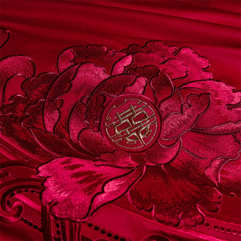 结婚简约四件套中式刺绣婚庆床单婚房陪嫁床上用品大红色喜庆套件