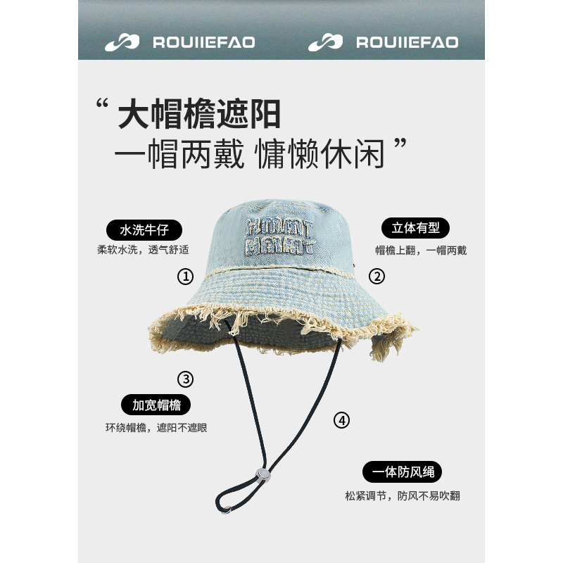 复古做旧磨边西部牛仔渔夫帽女夏季户外徒步登山大檐防晒遮阳帽子