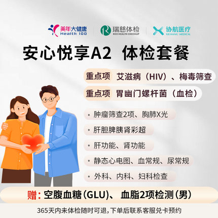 瑞慈体检/美年大健康 安心悦享A2体检套餐成人父母男女全国通用