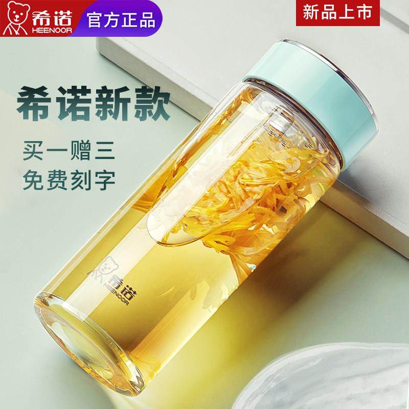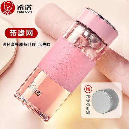 希诺女士玻璃杯办公花茶杯单层加厚带滤网夏季高颜值水杯可定制