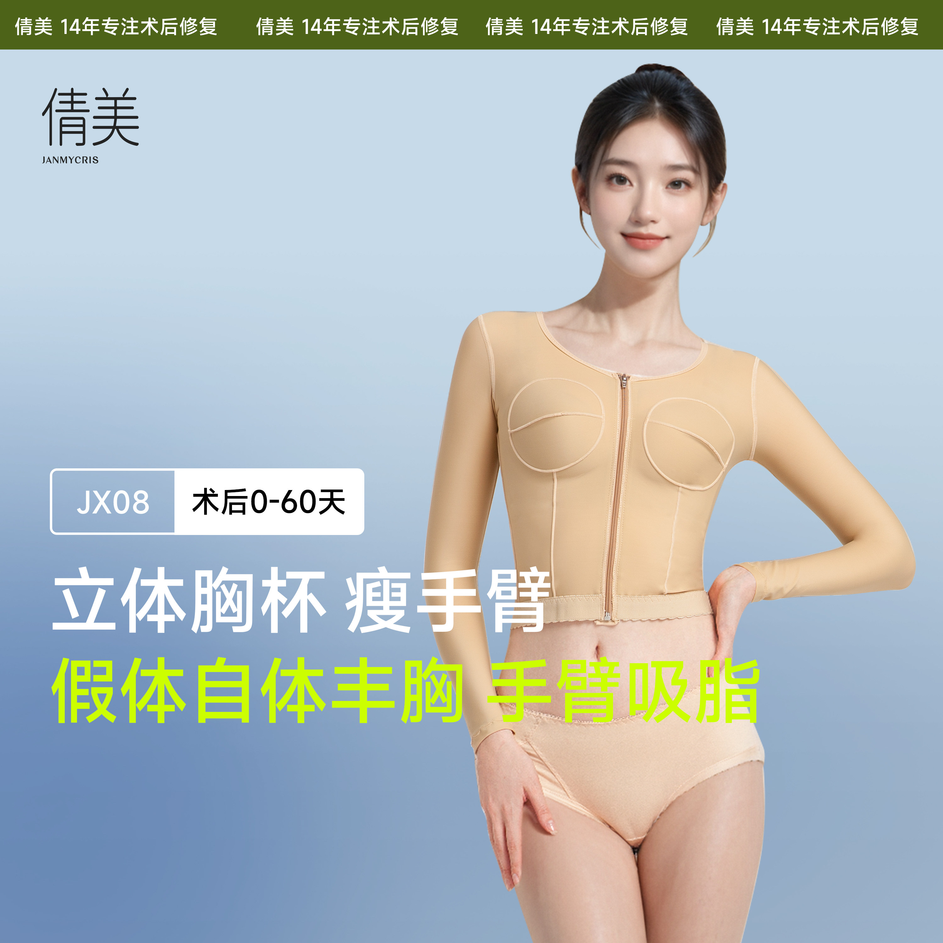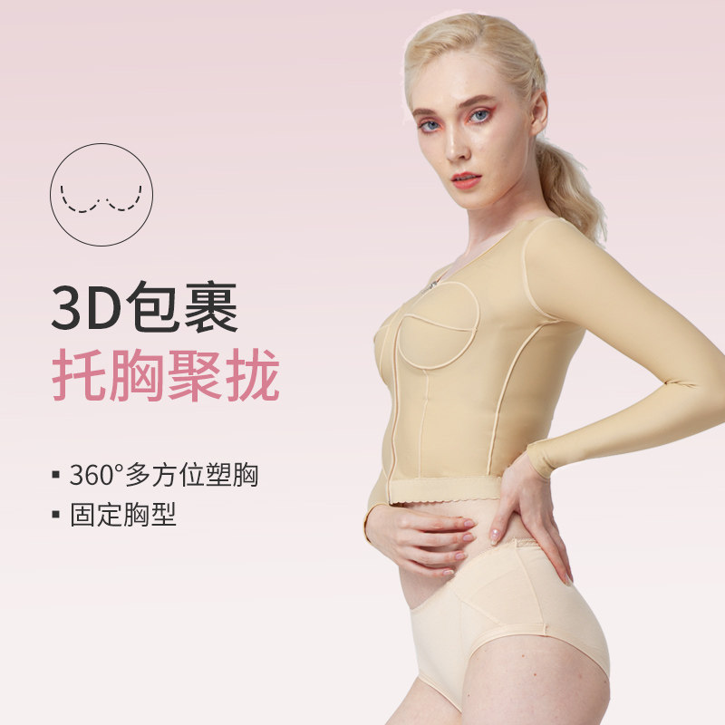 手臂肩背吸脂隆胸丰胸填充假体固定术后医用塑有杯长袖塑身内衣