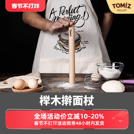 TOMIZ富泽商店烘焙器具直筒擀面杖烘焙家用压面杖天然面杖木棍