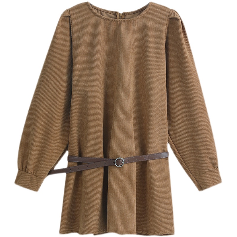 2024春秋新款高冷范女装气质纯欲风法式设计感小众灯芯绒连衣裙子