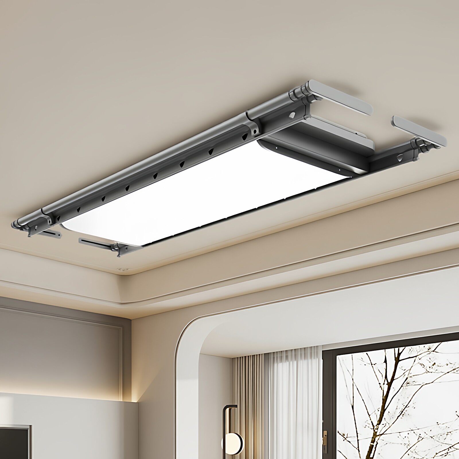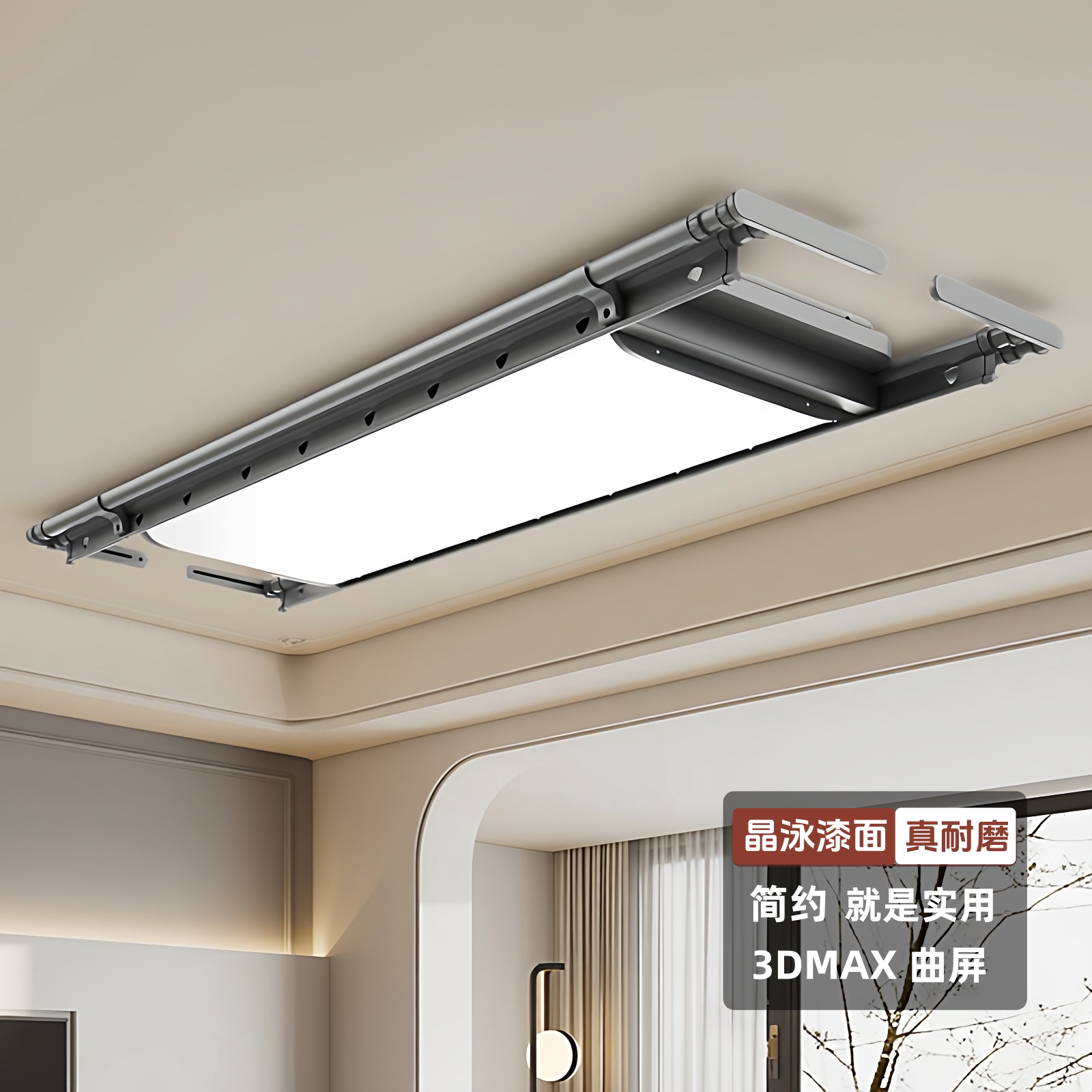 【铝合金】超薄电动晾衣架3D曲屏智能遥控升降阳台家用自动晒衣机