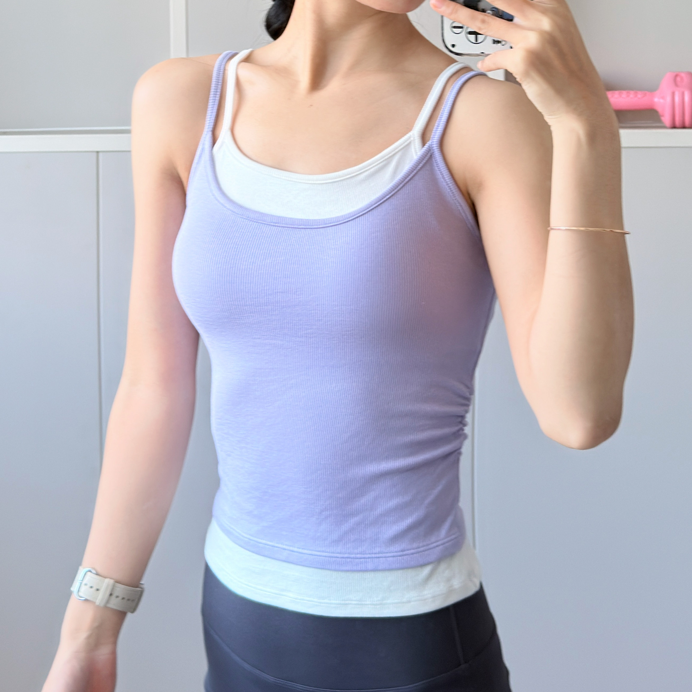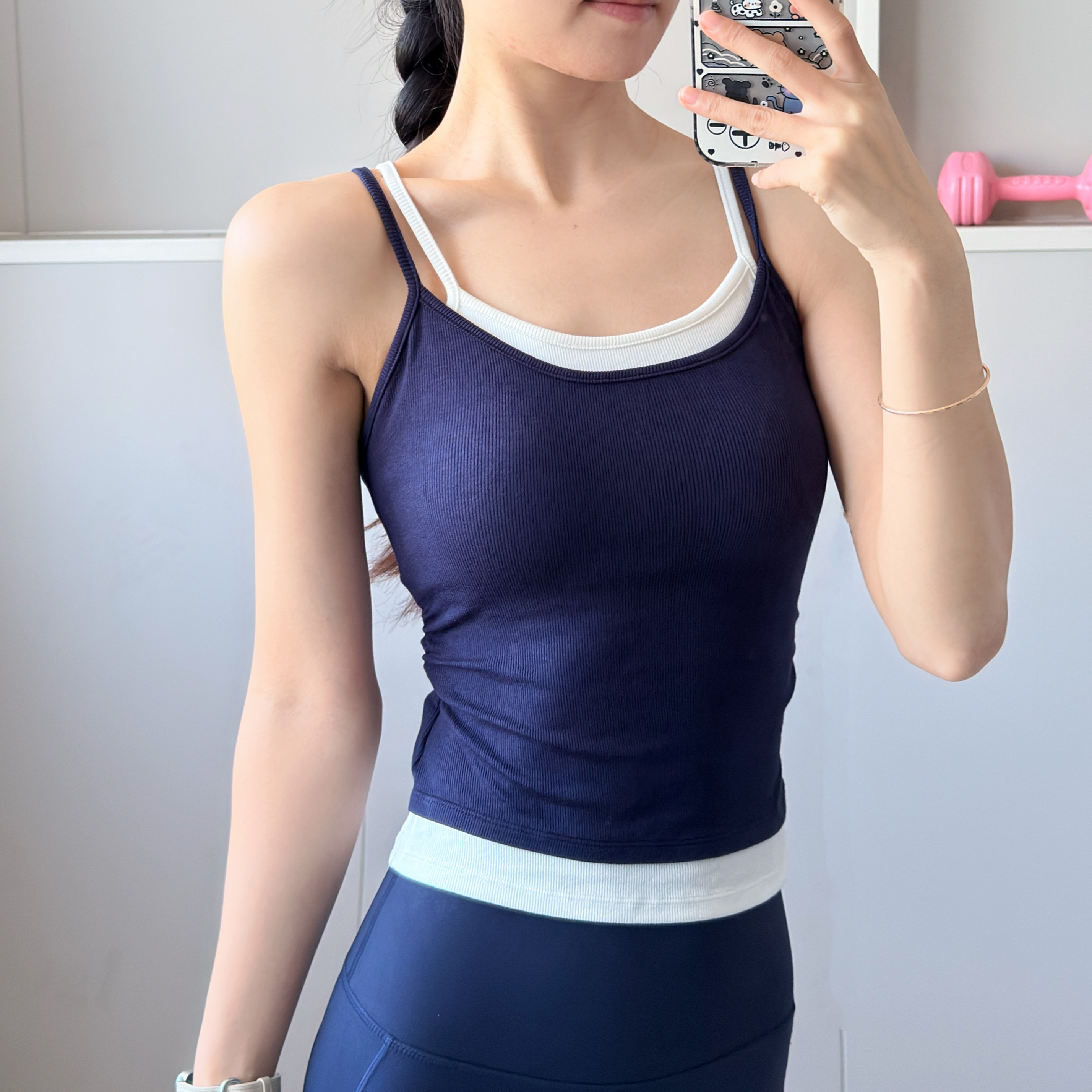 撞色假两件吊带背心女一体式免穿文胸内搭外穿美背瑜伽服运动上衣