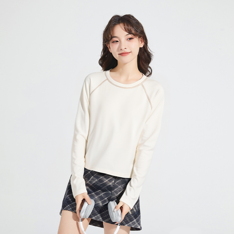 班尼路长袖t恤女2025秋季新款修身显瘦内搭针织打底衫圆领上衣女Q