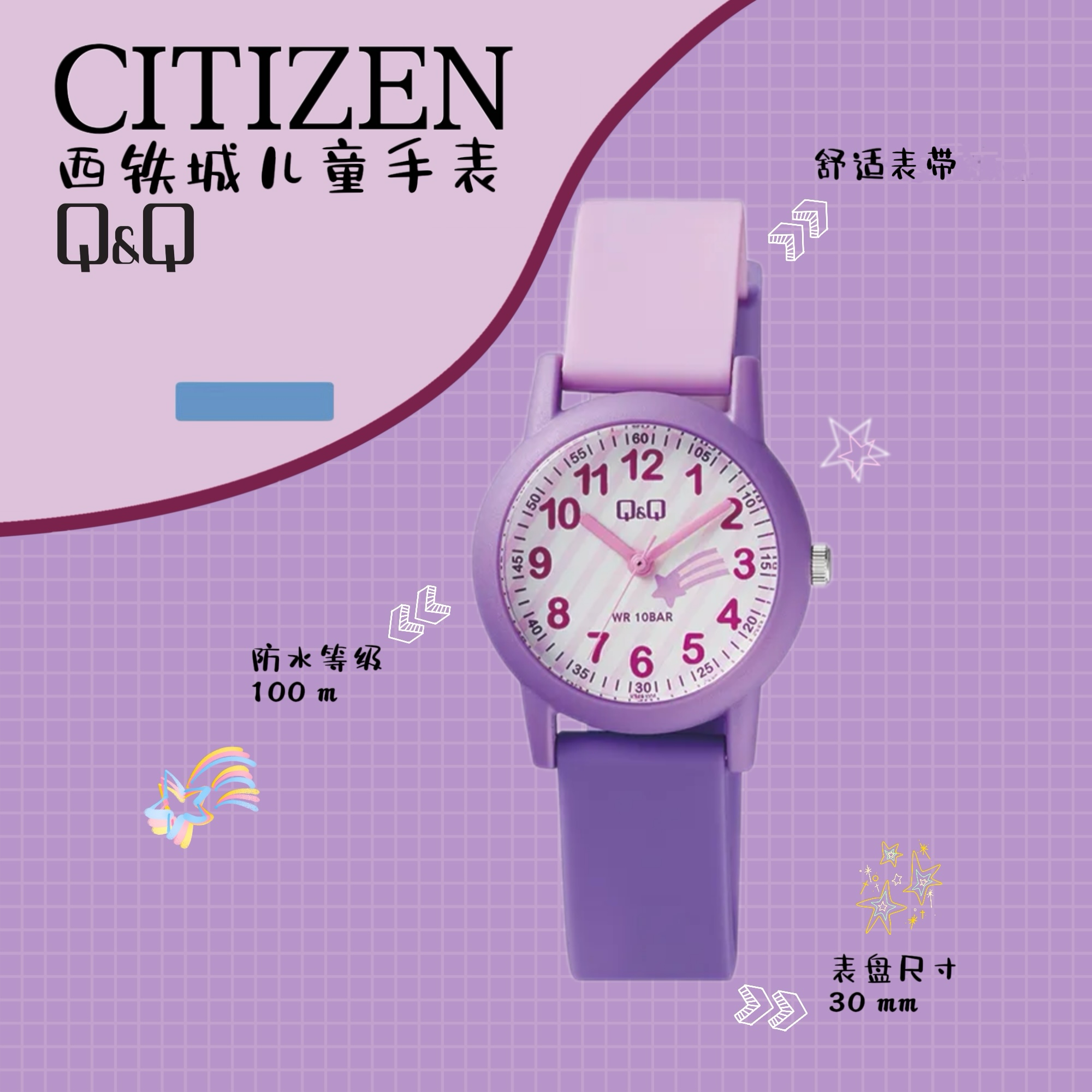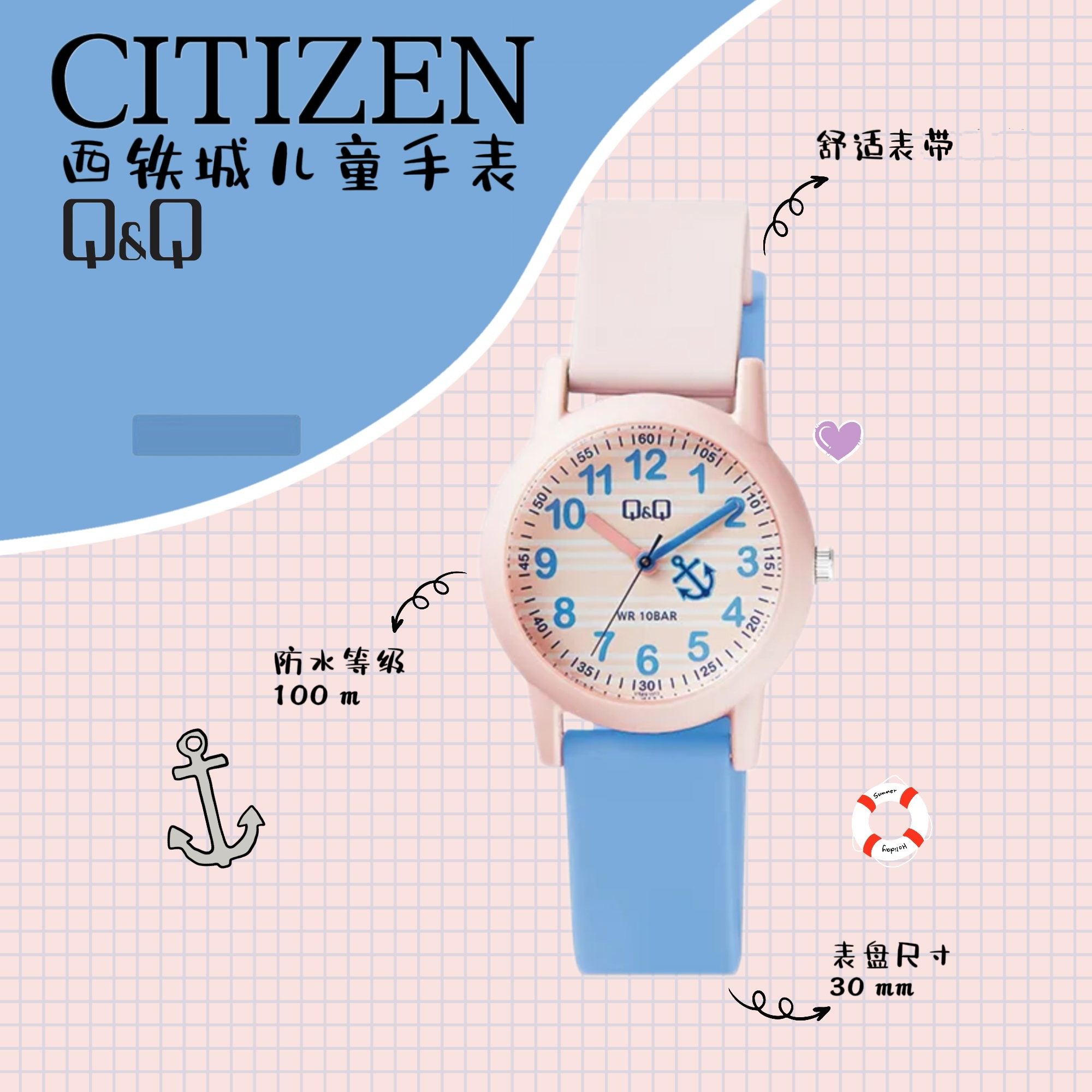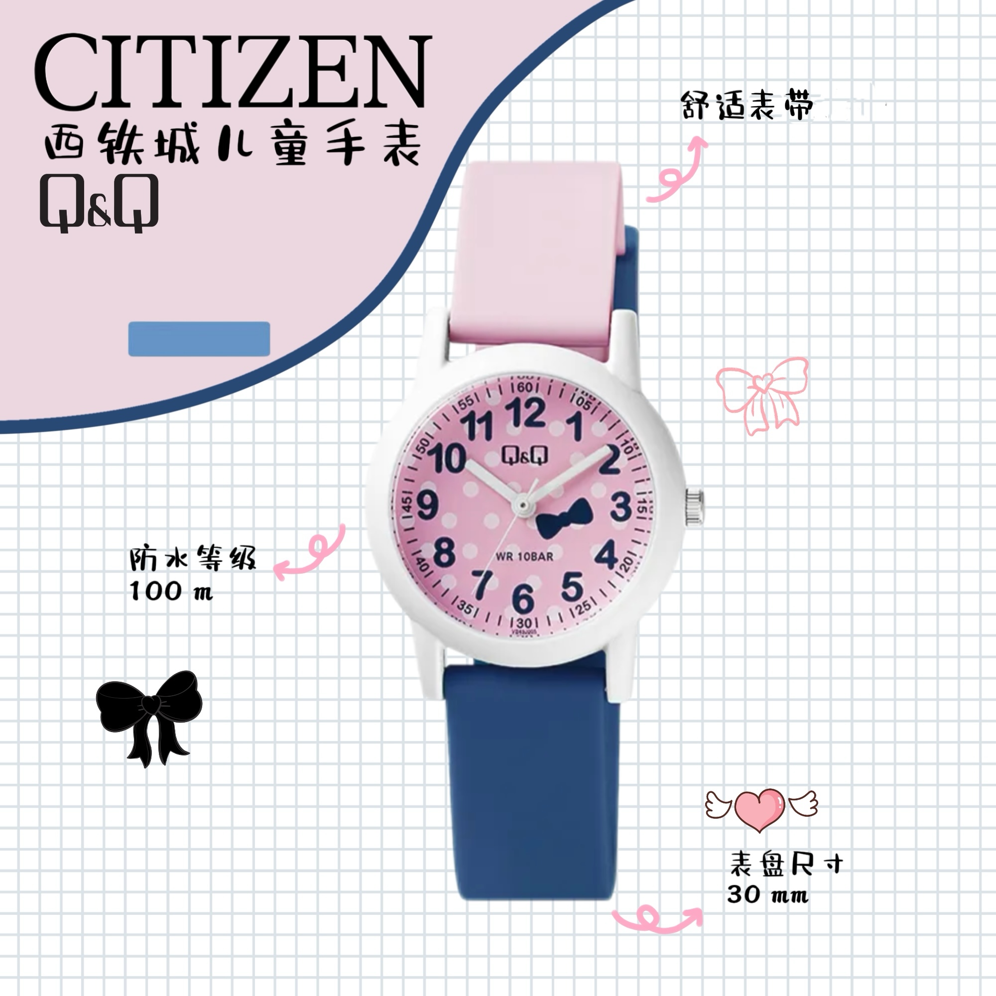 【双拼色表带】卡通多彩表盘西铁城Q&Q儿童指针静音防水石英手表
