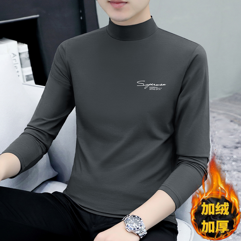 加绒加厚中领内衣t恤男冬季百搭保暖长袖韩版潮牌纯棉休闲打底衫