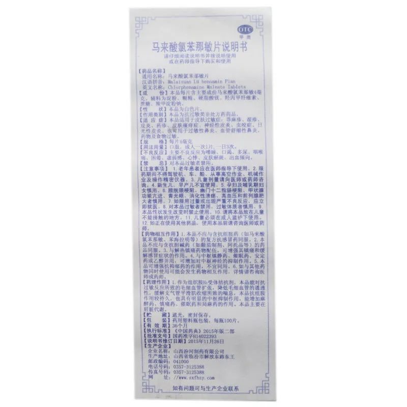 汾河扑尔敏马来酸氯苯那敏片皮肤过敏药湿疹荨麻疹瘙痒皮炎老牌子