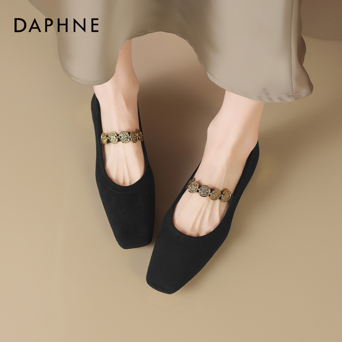达芙妮绒面法式玛丽珍女鞋2025新款方头新中式鞋子配旗袍浅口单鞋