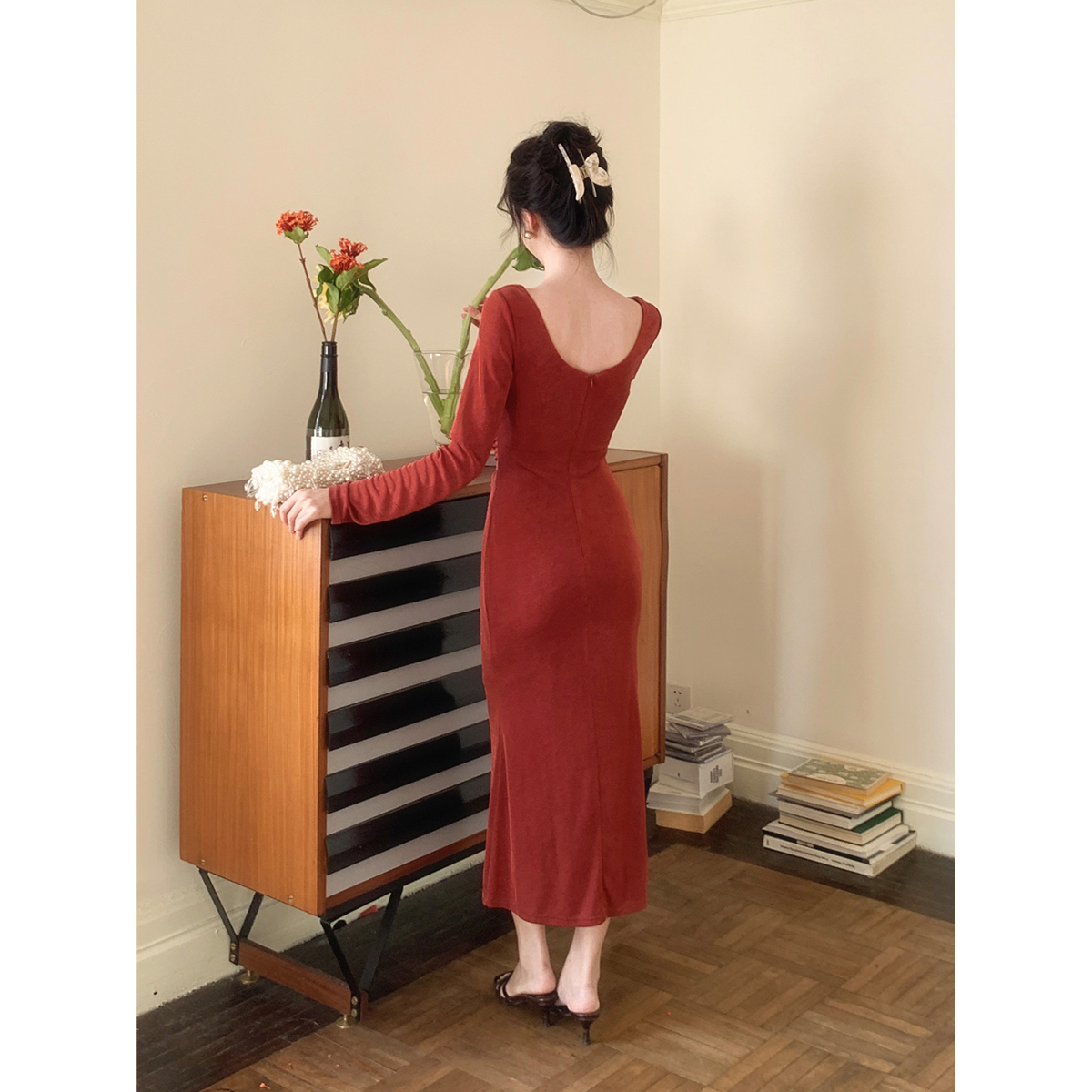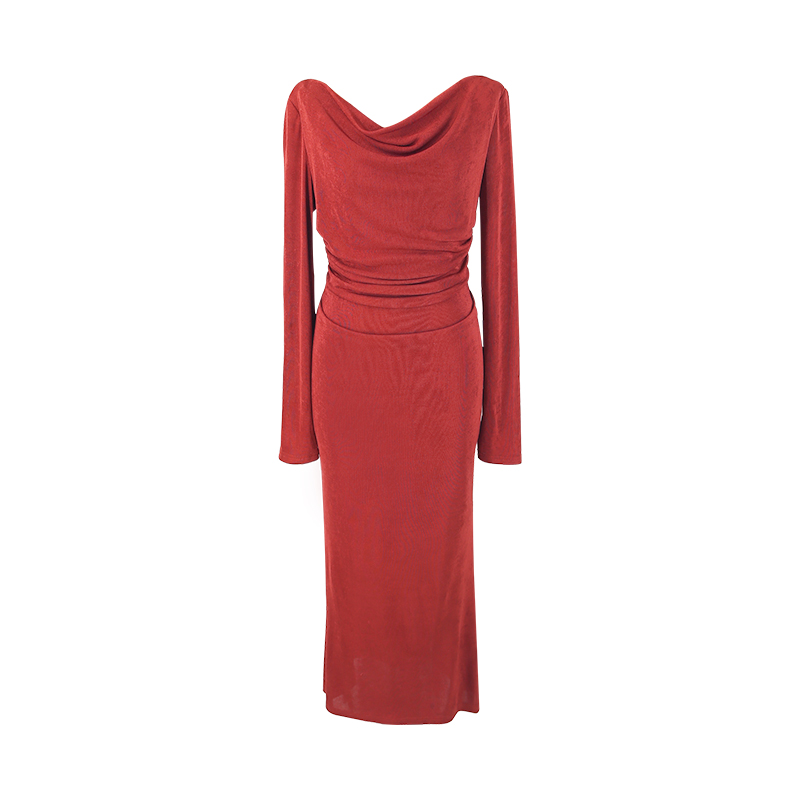 胸口小心机蕾丝边荡领显瘦连衣裙