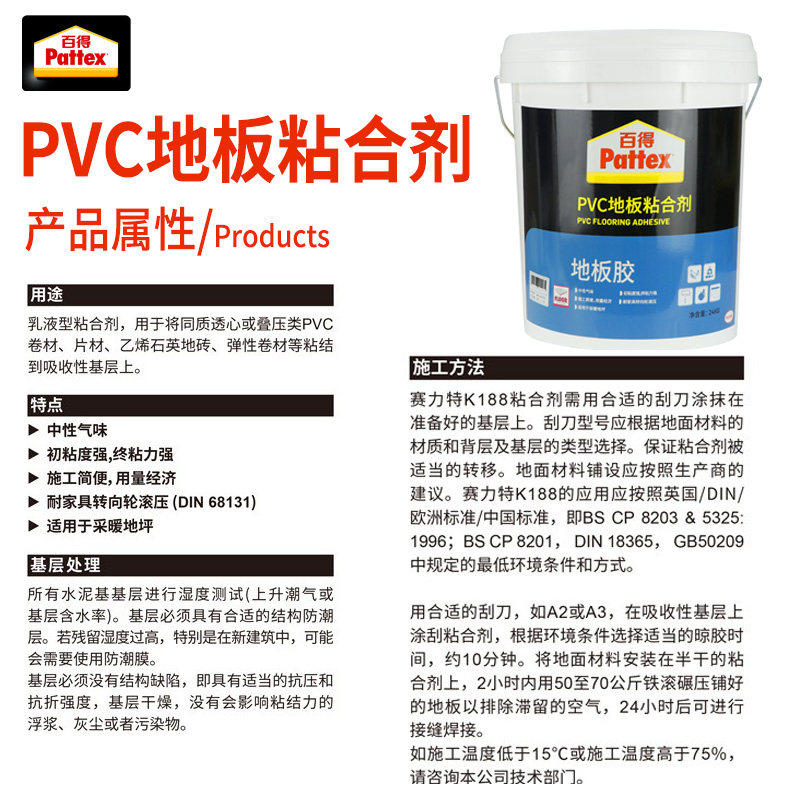 德国汉高百得K188地板胶PVC地板粘合剂环保幼儿园装修黏结剂胶水