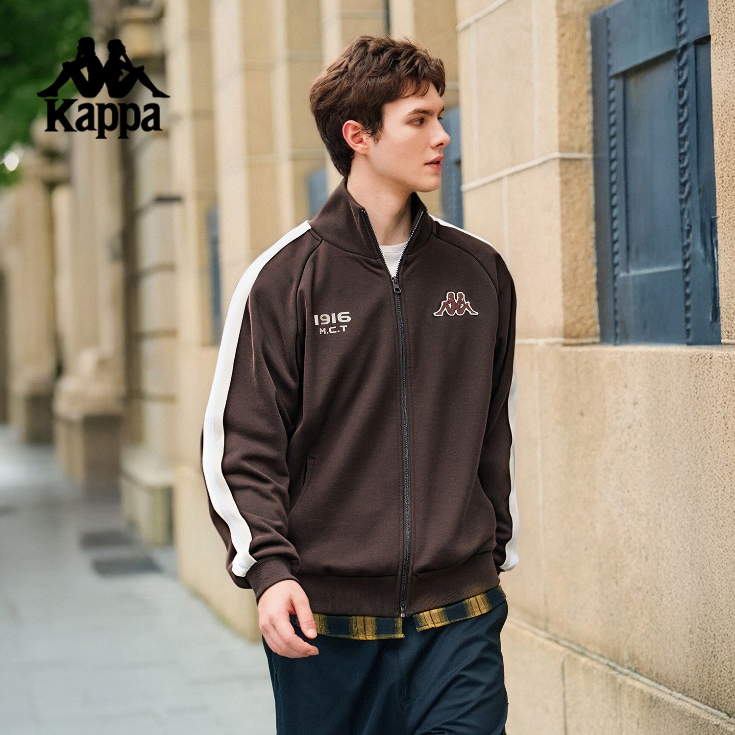 Kappa卡帕背靠背秋季新款复古运动夹克卫衣外套男休闲针织开衫潮