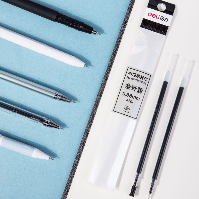 得力中性笔笔芯0.5mm黑色全针管签字芯0.38mm水笔替芯碳素笔小学生考试专用笔心初高中生速干笔芯大容量办公