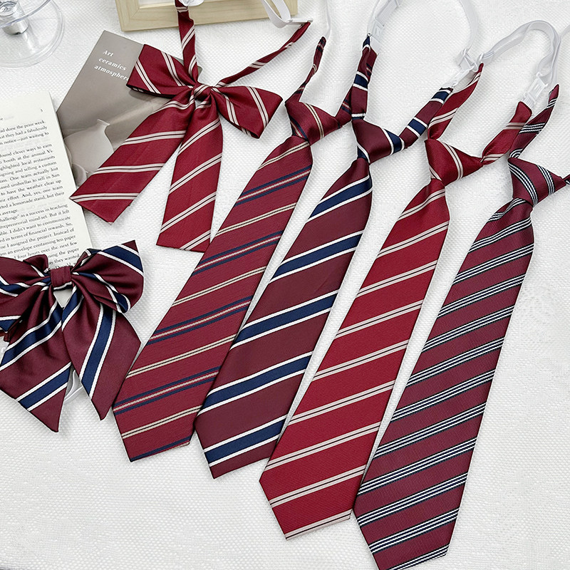 东京岁时记jk小物条纹领带原创学院风红色绀金免打衬衫领结女配饰