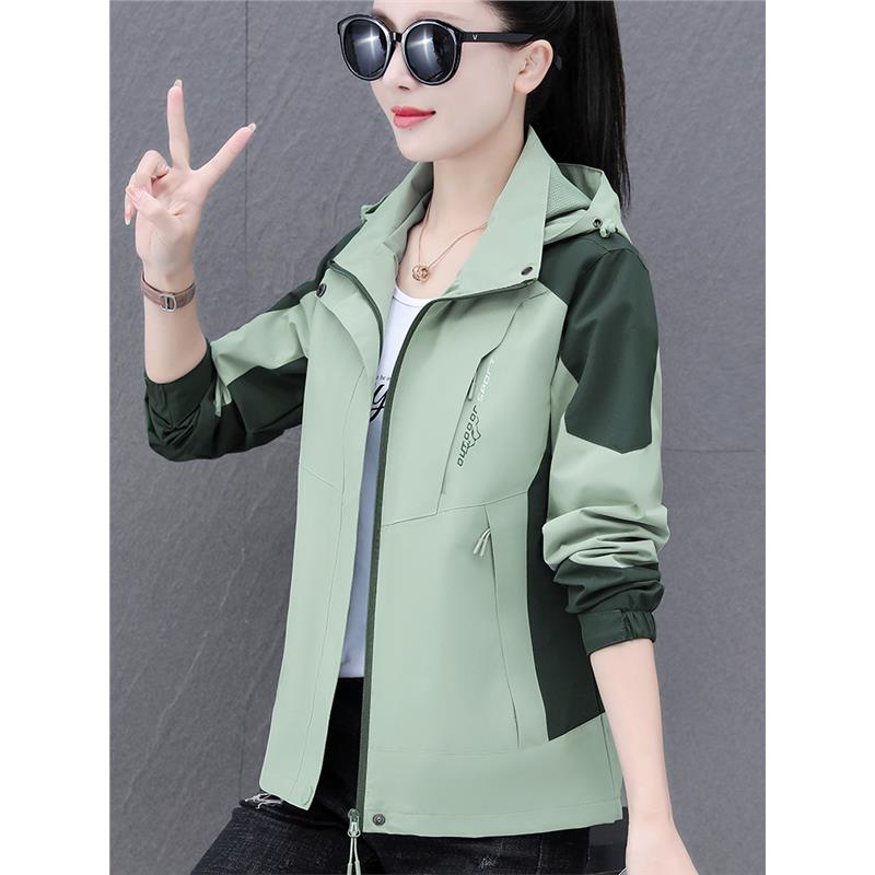 啄木鸟户外冲锋衣女款2025新款春秋薄款宽松小个子女士休闲外套潮
