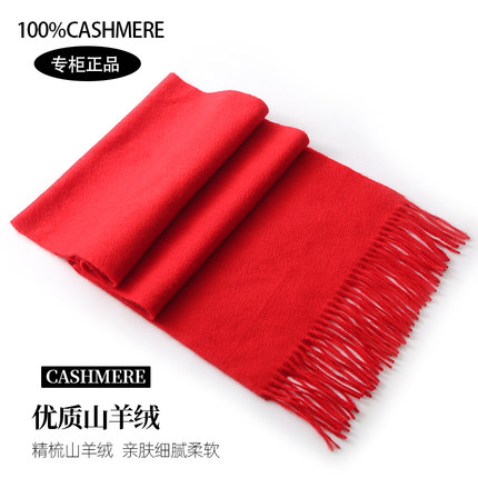 鄂尔多斯市100%羊绒大红围巾本命年围脖秋冬男女加厚羊毛定制LOGO