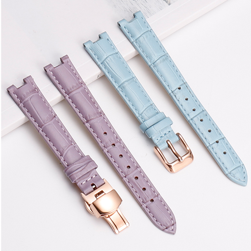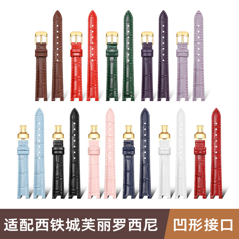 光动能女士手表链真皮表带女凹口
