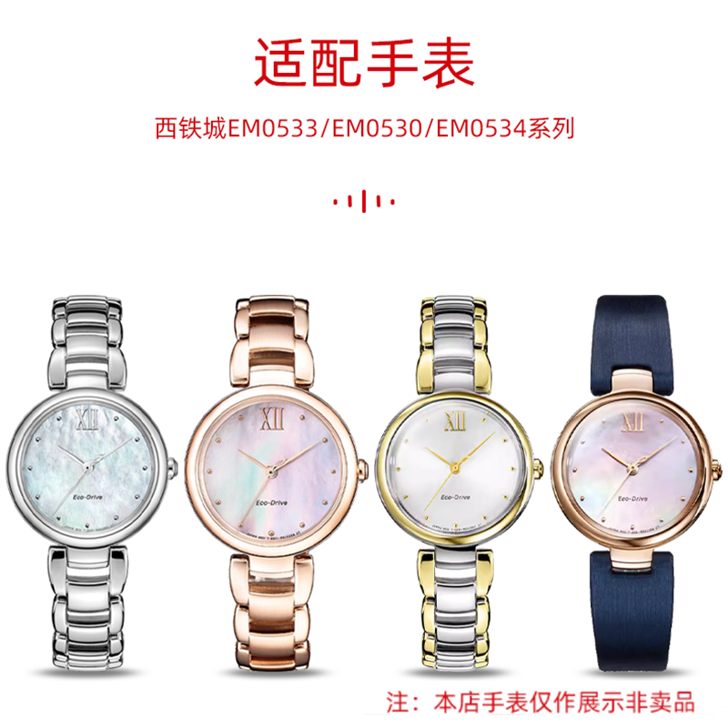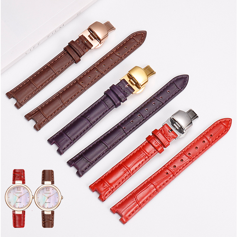 适配西铁城光动能贝母盘女士腕表女凹口真皮表带EM0533 0530 0673