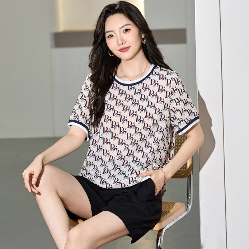 大码女装胖mm宽松显瘦雪纺上衣200斤胖妹妹夏装时尚休闲短袖T恤衫
