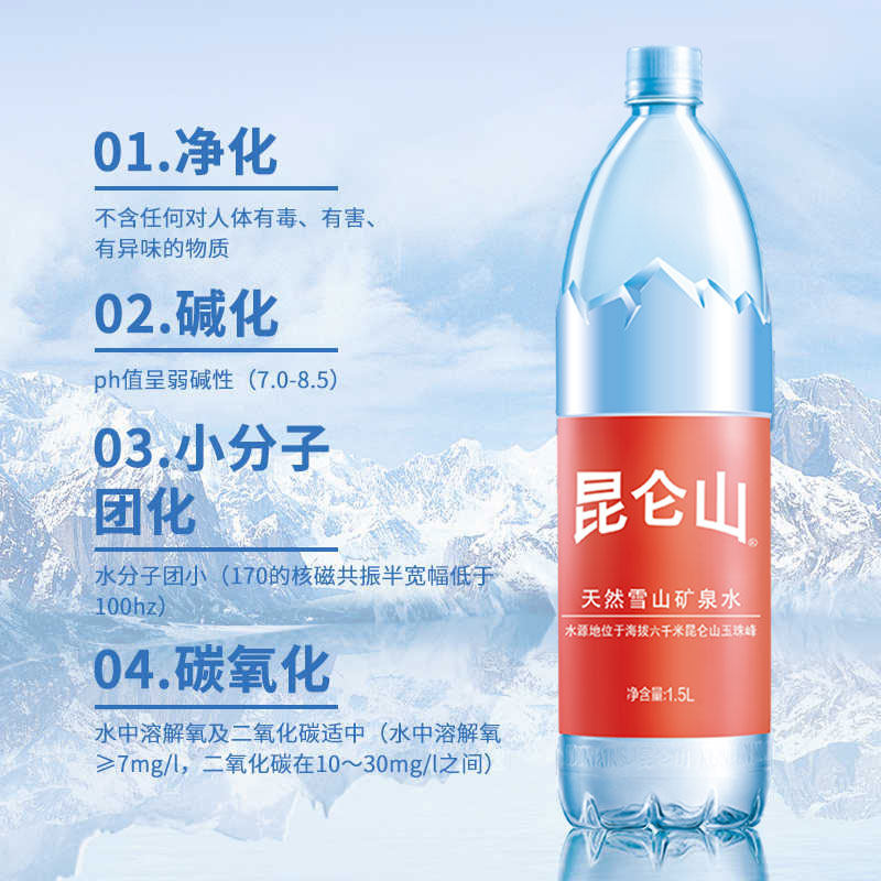 昆仑山雪山矿泉水1.5L*12瓶整箱天然弱碱性水泡茶高端饮用水