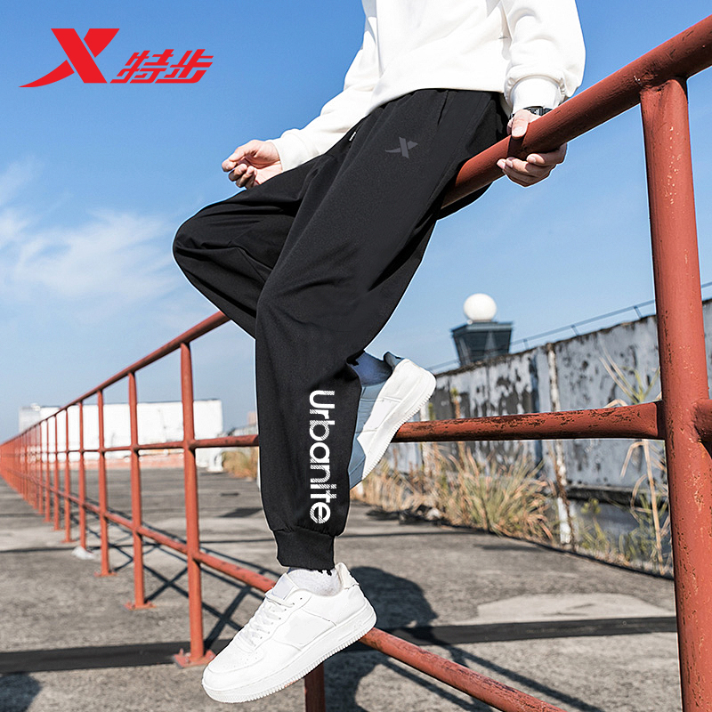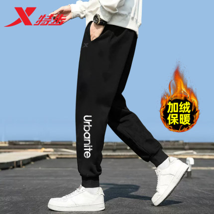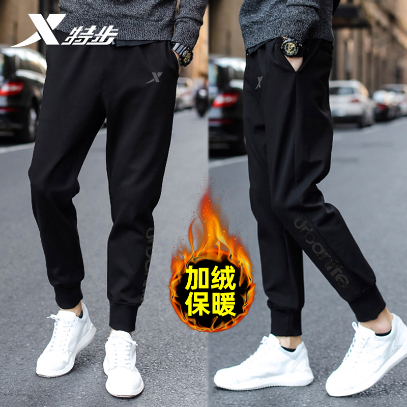 特步加绒运动裤男秋季新款加厚裤子针织长裤男士正品宽松休闲卫裤