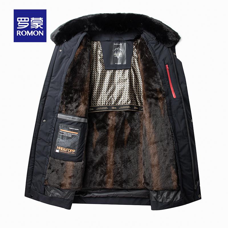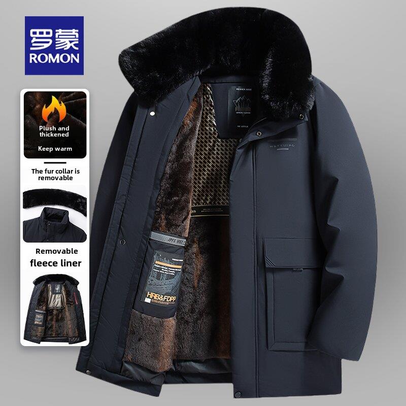罗蒙爸爸装棉服冬季毛领内胆可脱卸加绒加厚保暖防寒中老年棉衣男