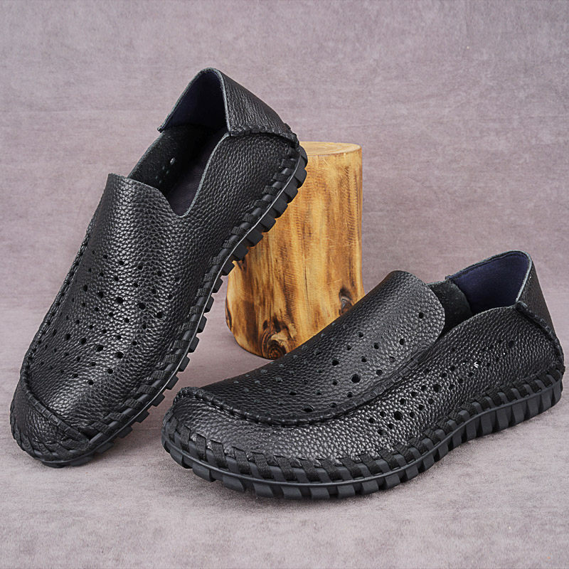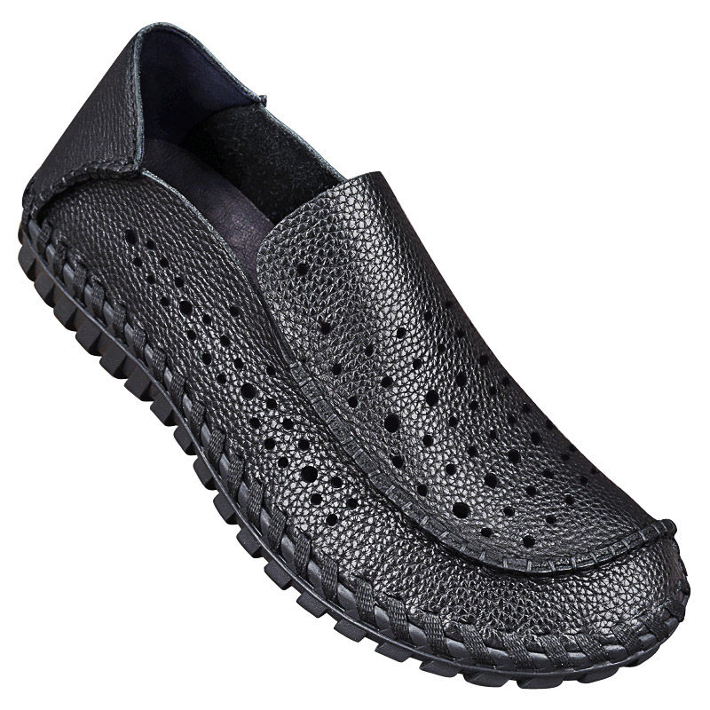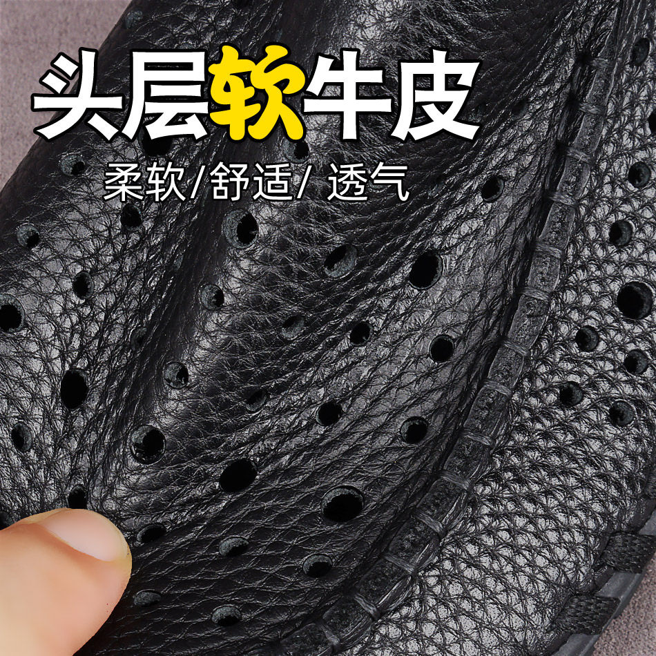 手工单层皮男鞋加宽头大脚背高肥胖春夏透气打孔镂空网眼真皮凉鞋