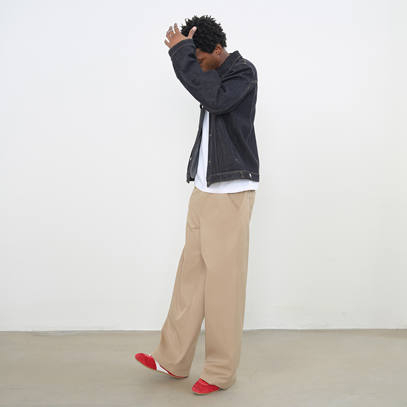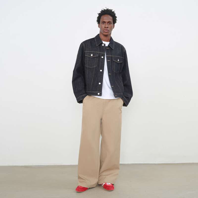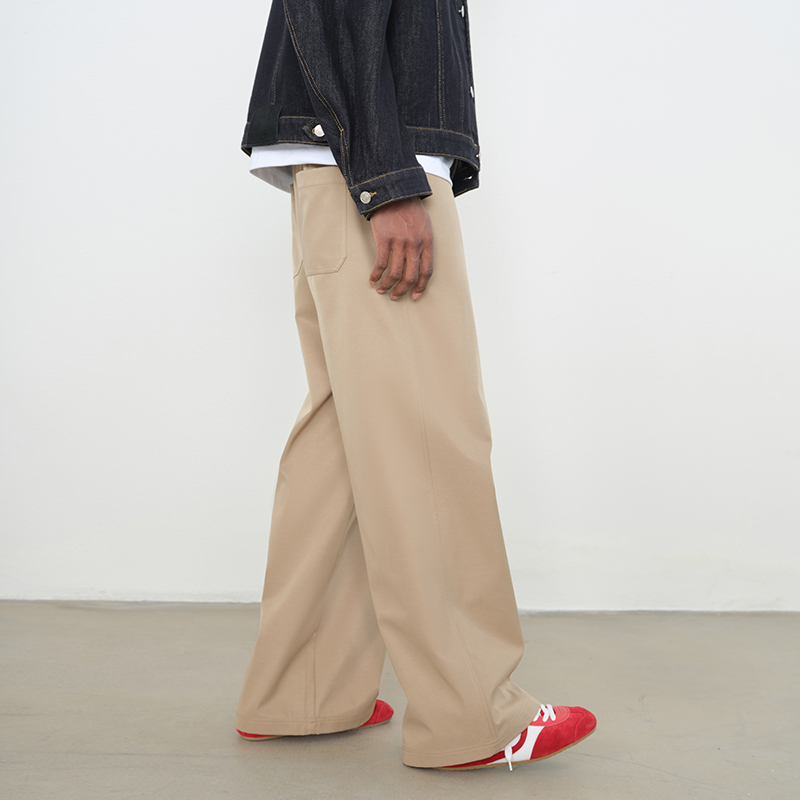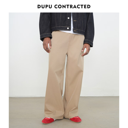 DUPU杜朴 宽松直筒卡其色休闲裤男 简约慵懒风垂感卡其色阔腿裤