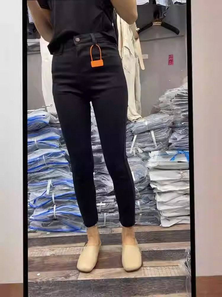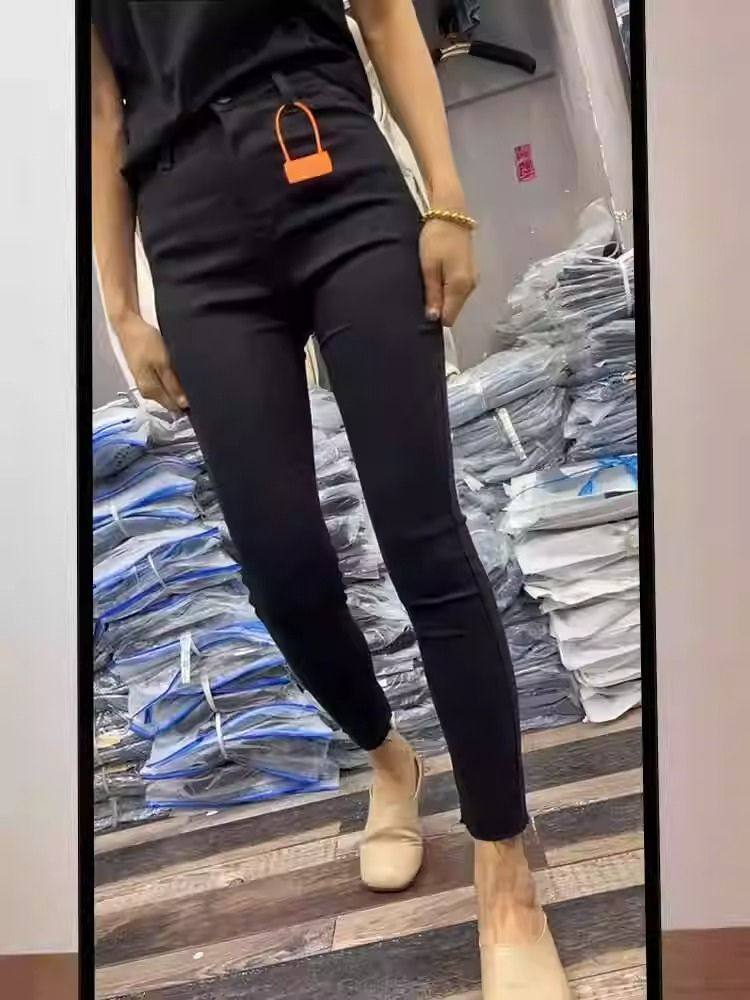 2025年秋季新款高腰弹力小脚牛仔裤女大码黑色修身显瘦九分铅笔裤