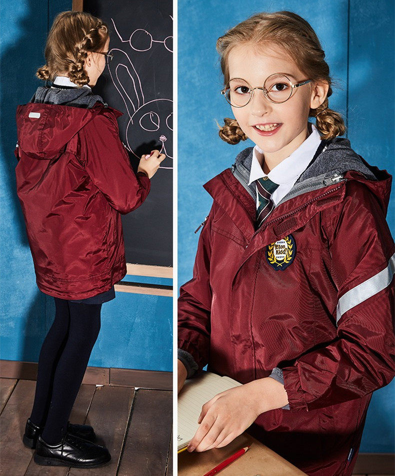 伊顿纪德冬季校服男女童多功能脱卸式枣红色外套防寒服10x012款