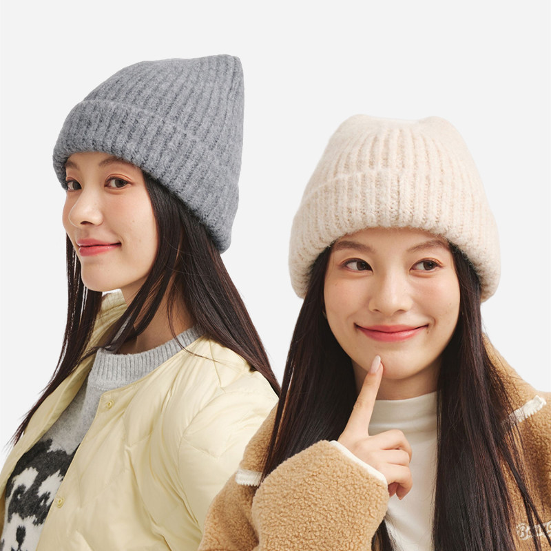热风女士帽子2025年冬季新款基础造型毛线帽时髦保暖显脸小帽子