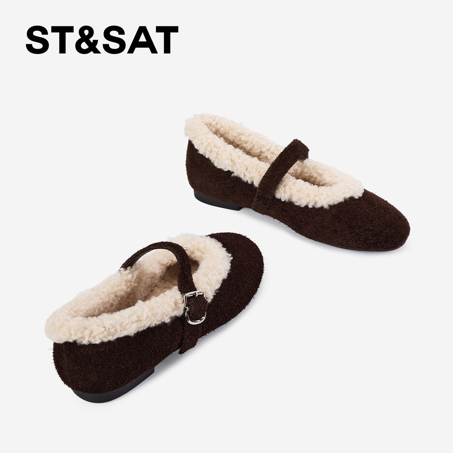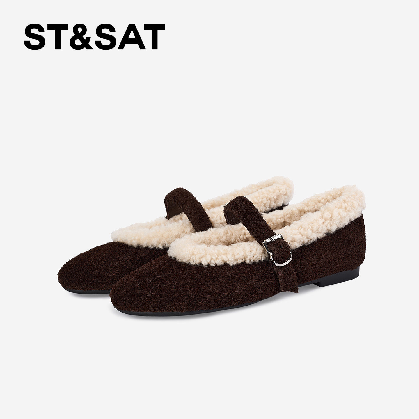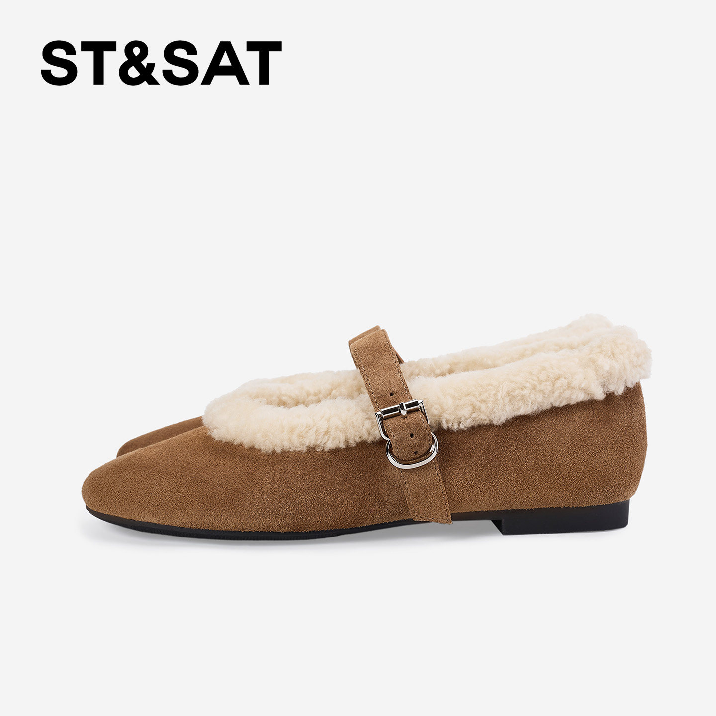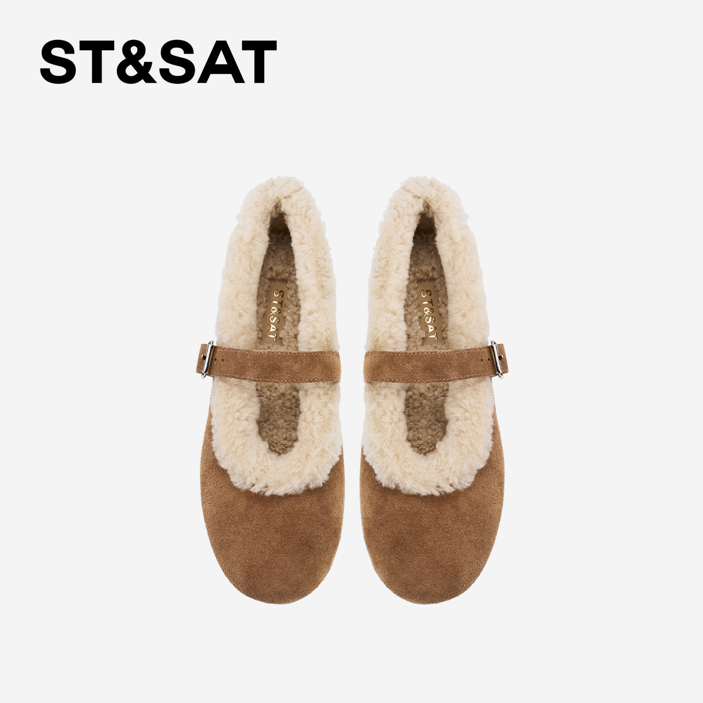 St&Sat/星期六2025新款单鞋复古毛绒玛丽珍鞋平底一脚蹬保暖女鞋