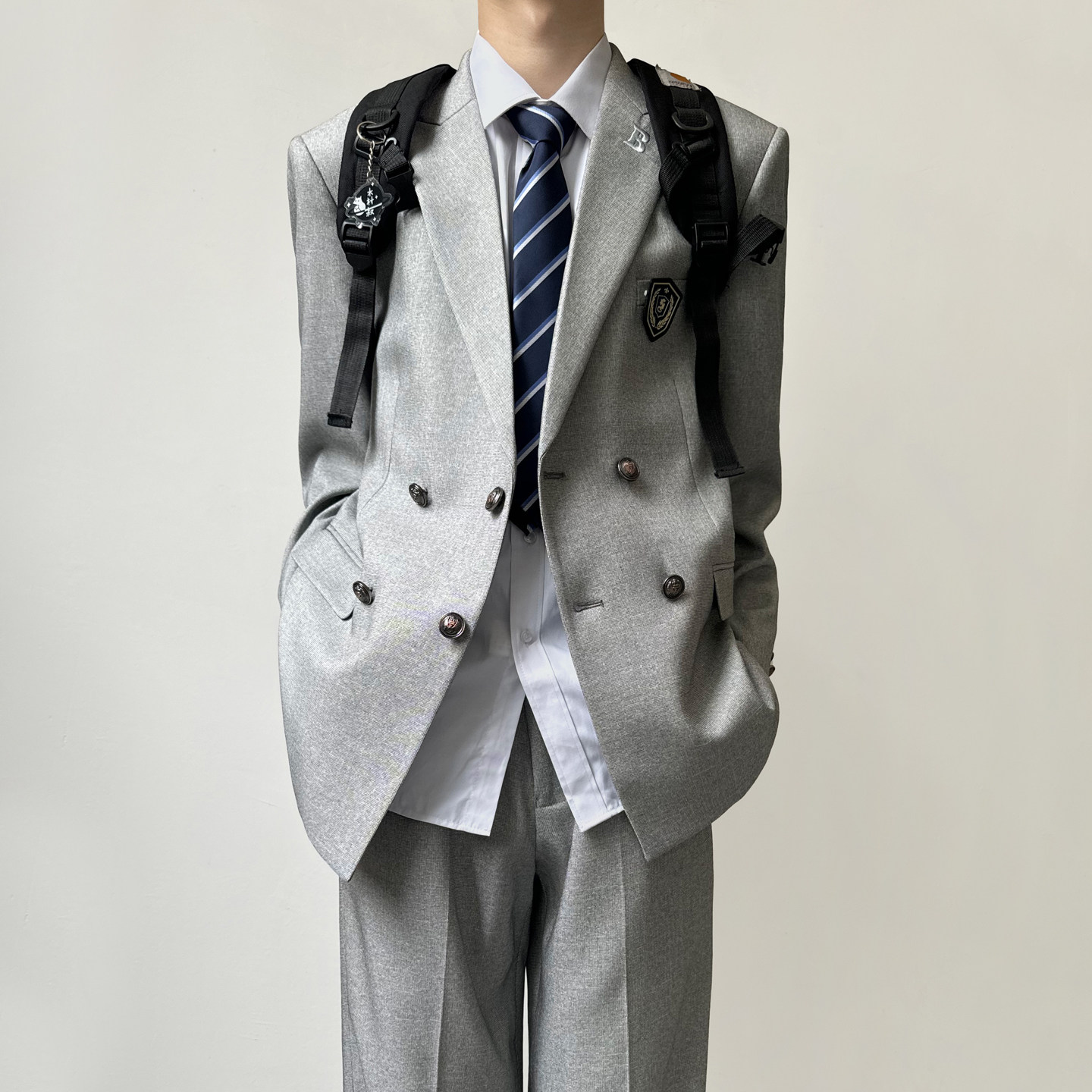 木村叔dk日系灰色西服套装男高级感正装青少年男生成人礼西服外套