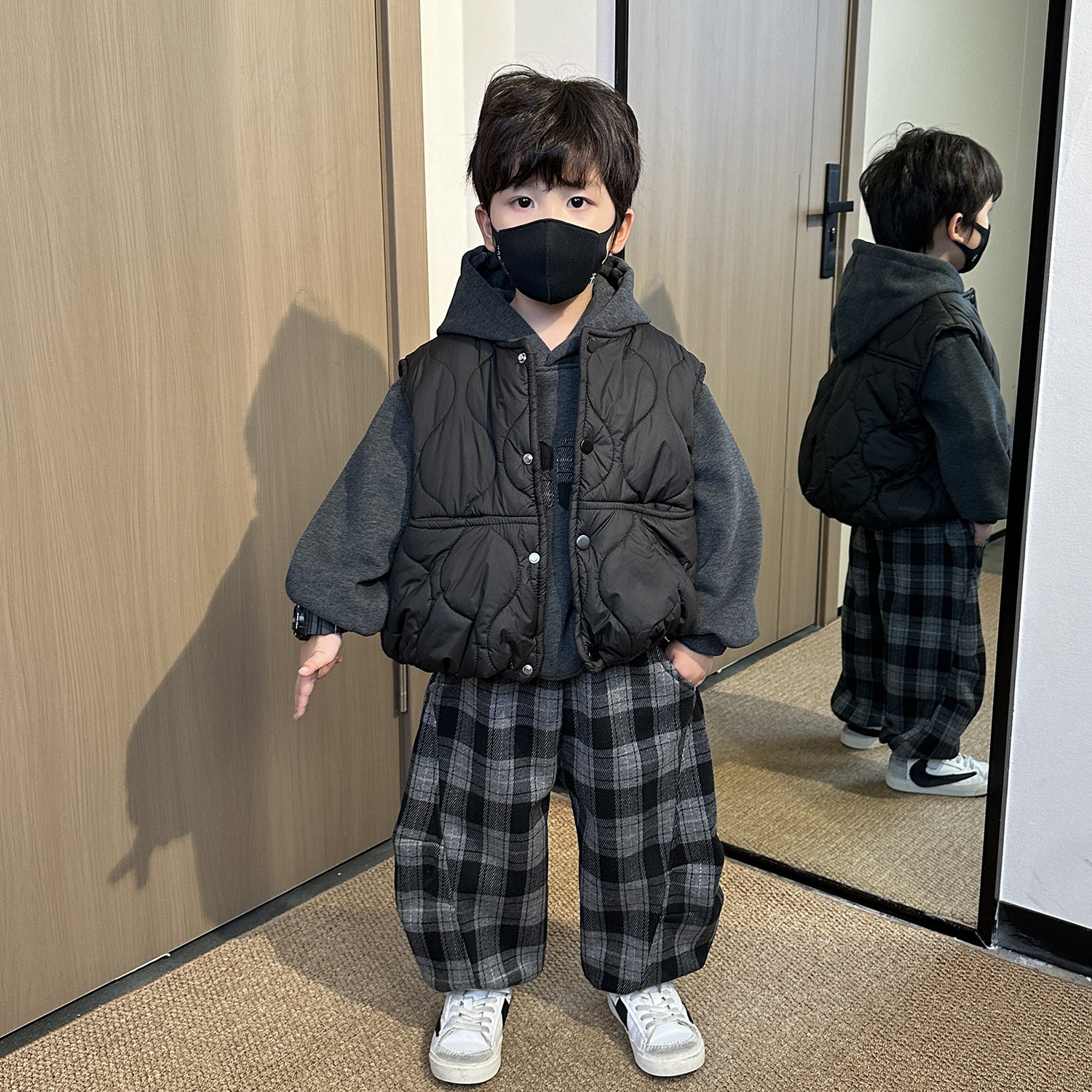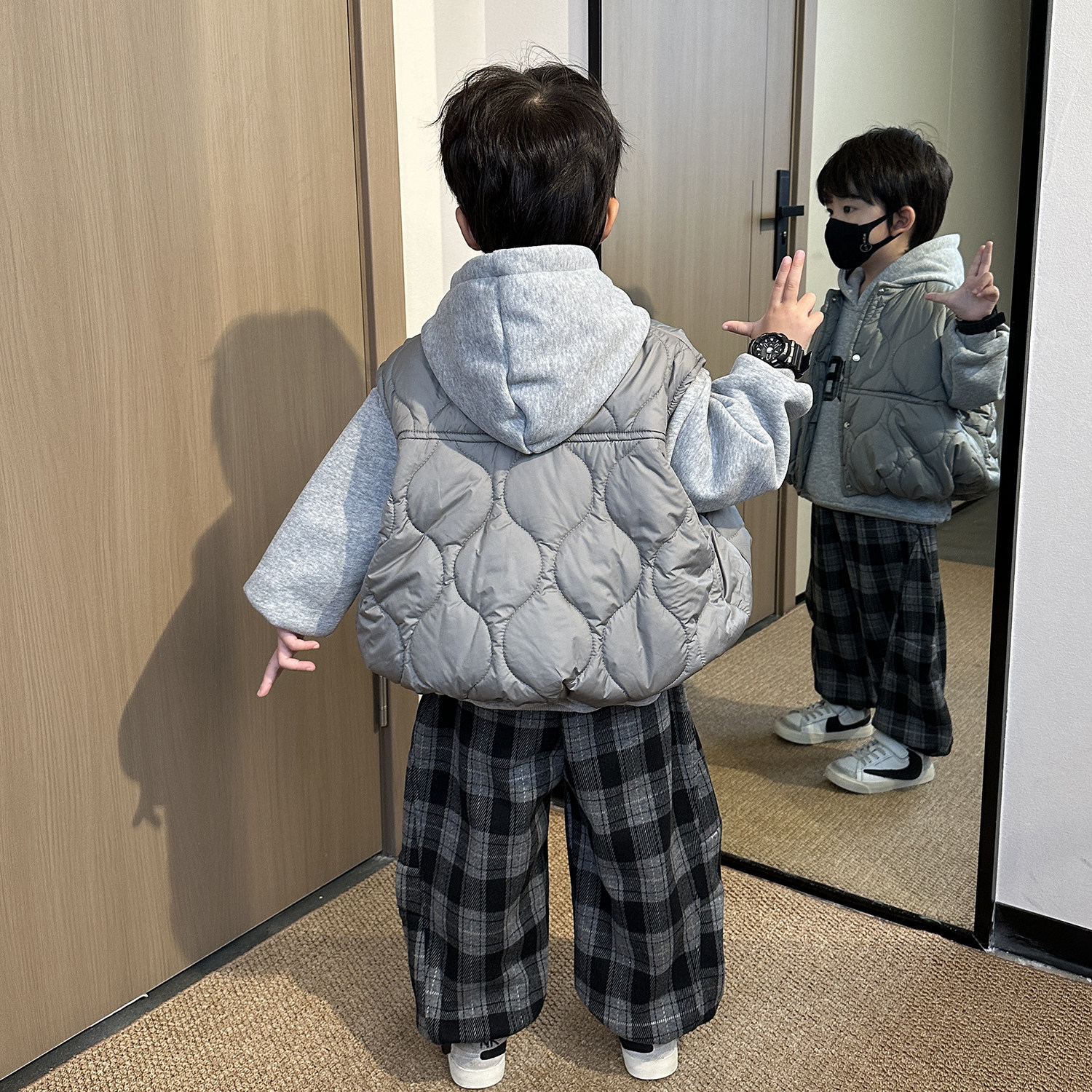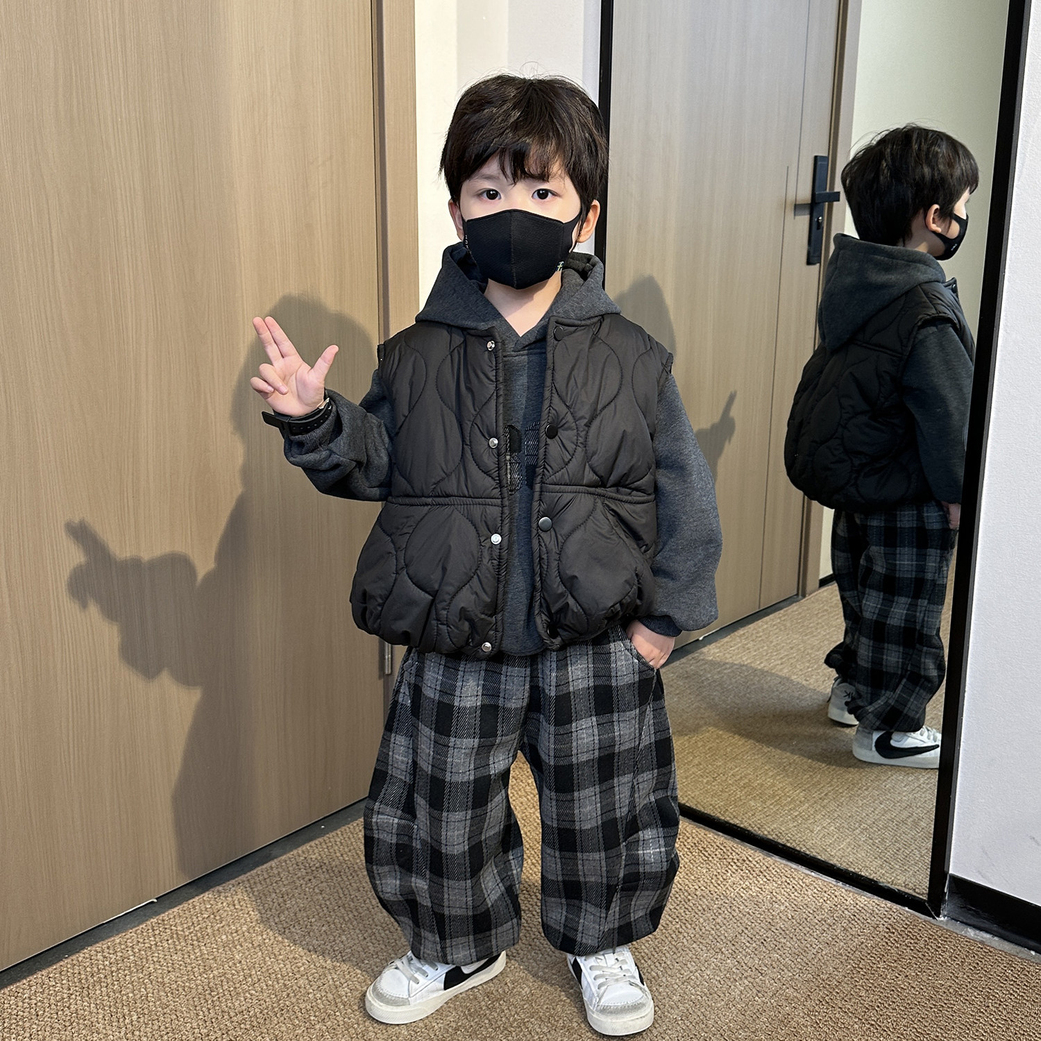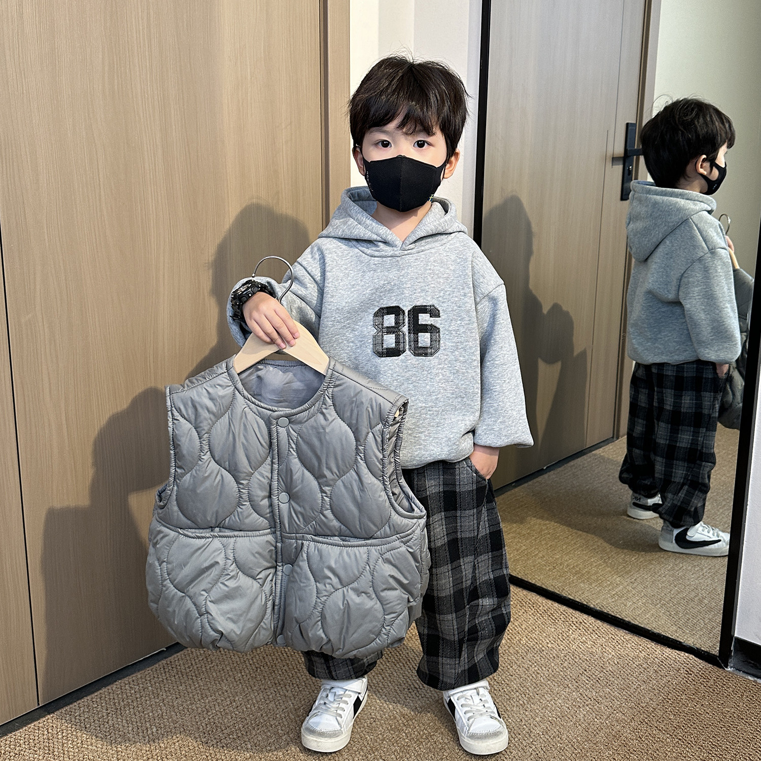 男童加绒卫衣套装冬装2025新款儿童秋冬加厚马甲宝宝休闲裤三件套