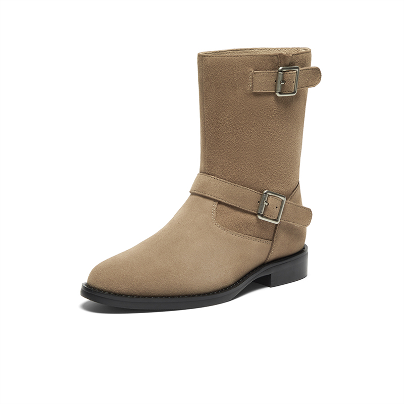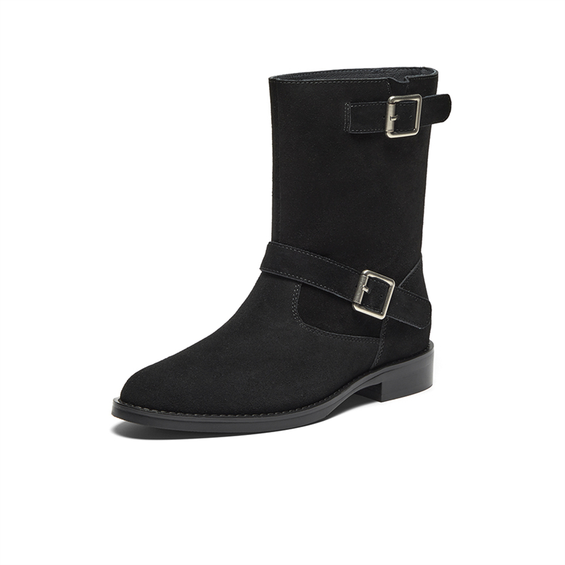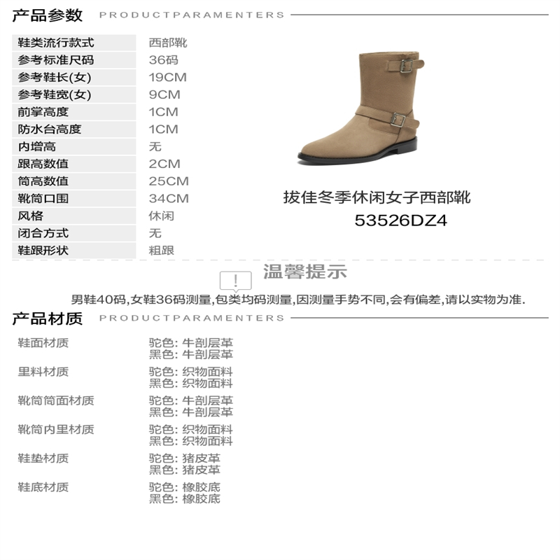 Bata拔佳时装靴女鞋2024冬季百搭西部复古粗跟时尚中筒靴53526DZ4