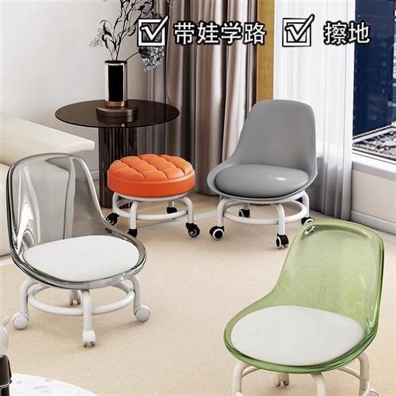 新款靠背滑轮凳子静音带万向轮座椅带娃小椅子矮凳家用客厅可移动