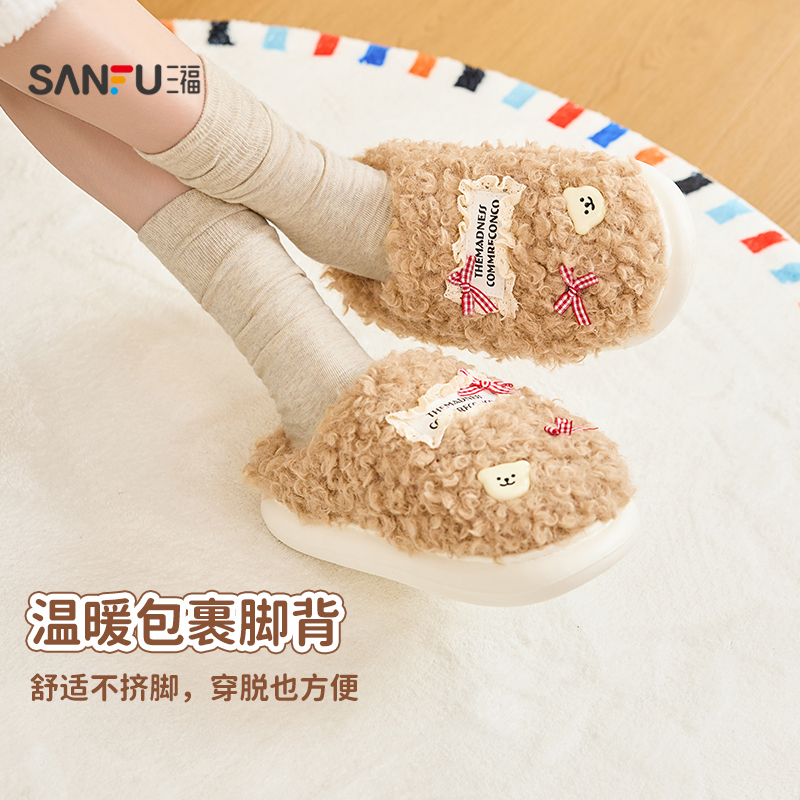 三福棉拖鞋少女可爱毛绒绒保暖月子半包拖室内家居拖鞋冬2025新款