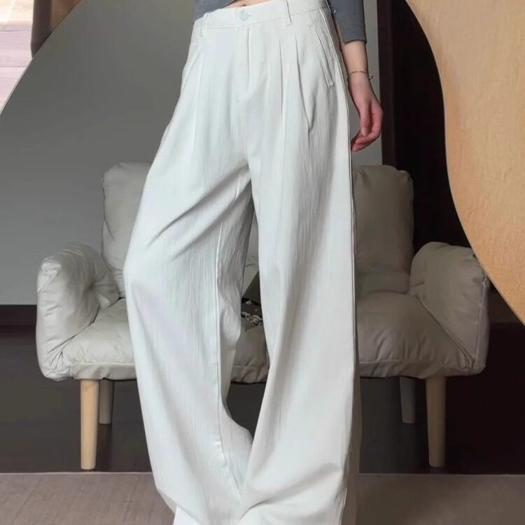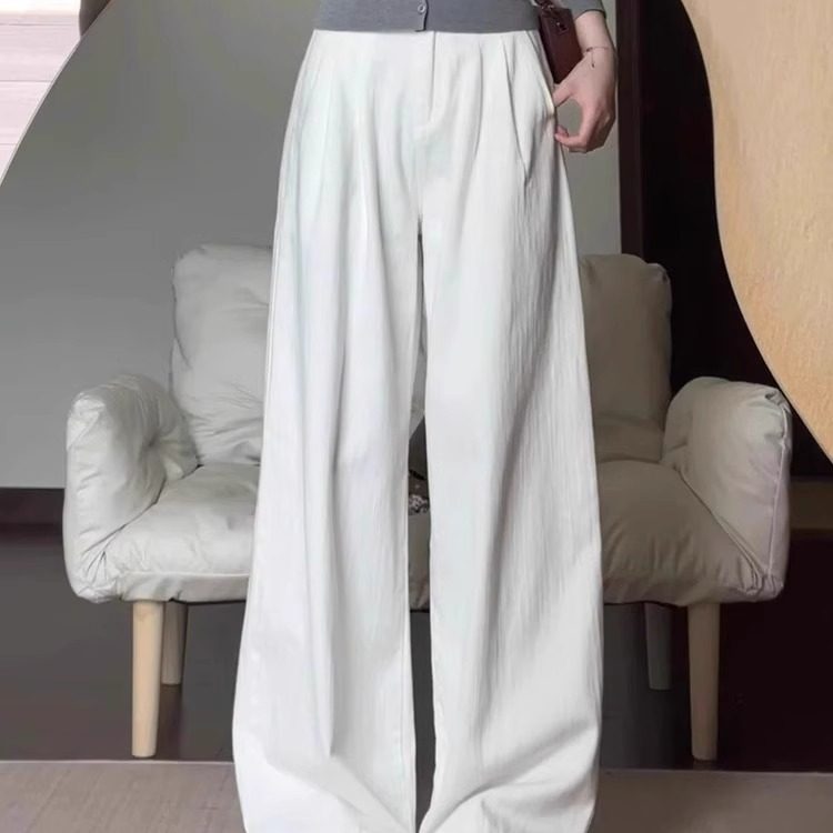 白色牛仔裤女夏季薄款高腰显瘦加长拖地长裤子宽松直筒阔腿休闲裤