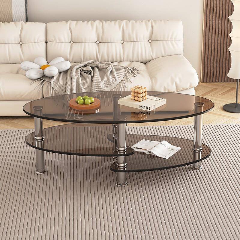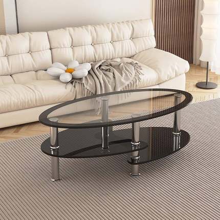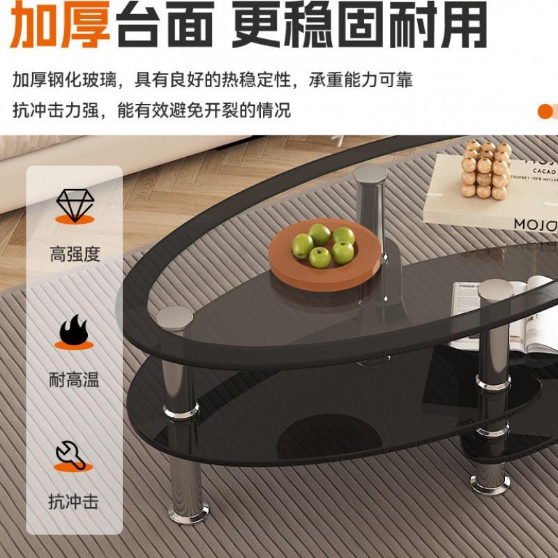 椭圆形茶几轻奢钢化玻璃玻璃创意家用小户型简约茶桌客厅现代桌子