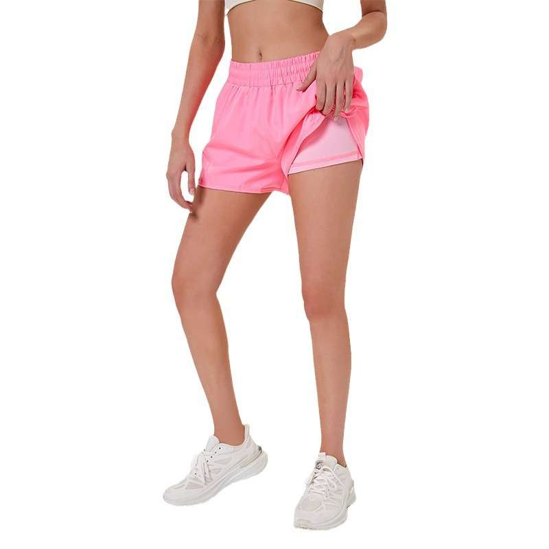 跨境短裤女宽松假两件防走光运动跑步速干休闲瑜伽健身高腰带内衬