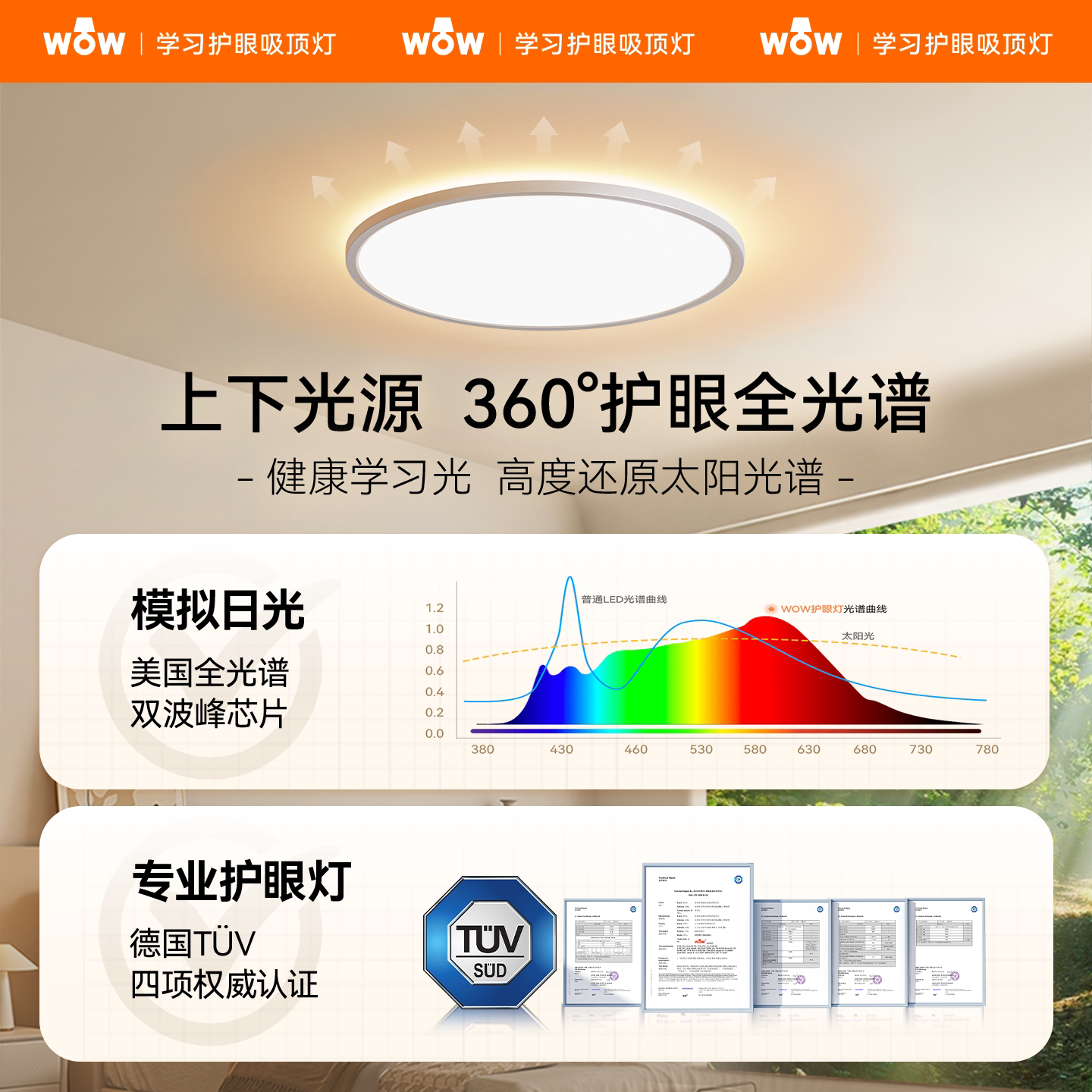 wow新款双光源护眼吸顶灯儿童房高亮全光谱北欧母婴级led卧室灯具