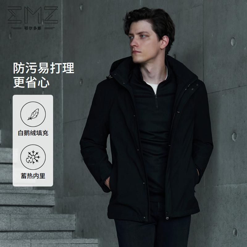 【白鹅绒】emz鄂尔多斯冬季男士加厚保暖休闲商务带帽羽绒服外套