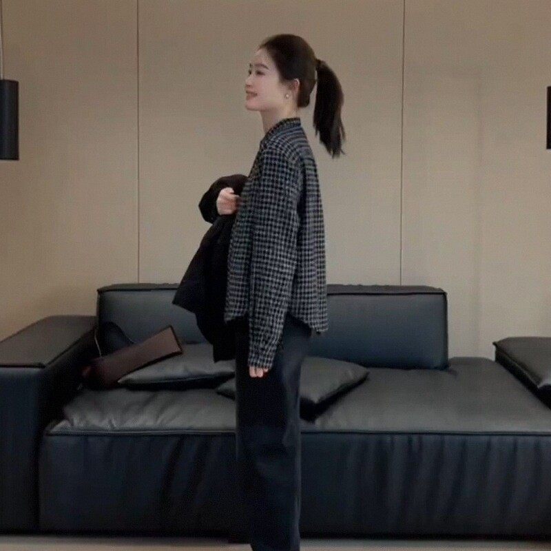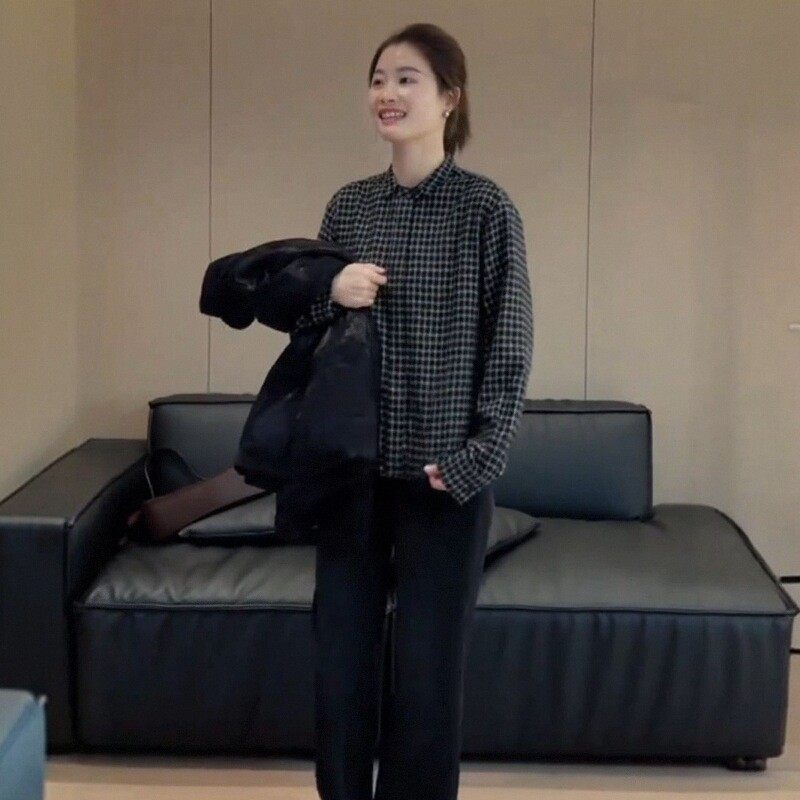 港味复古磨毛加厚格子衬衫女秋冬2025新款长袖内搭叠穿打底衫上衣
