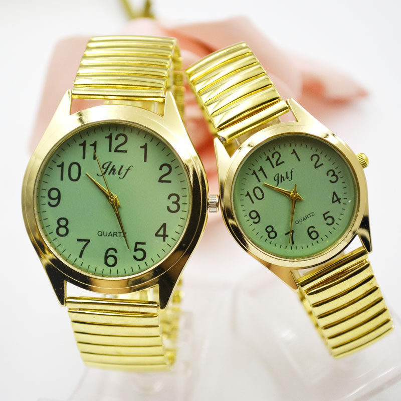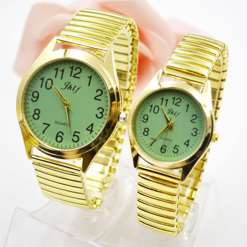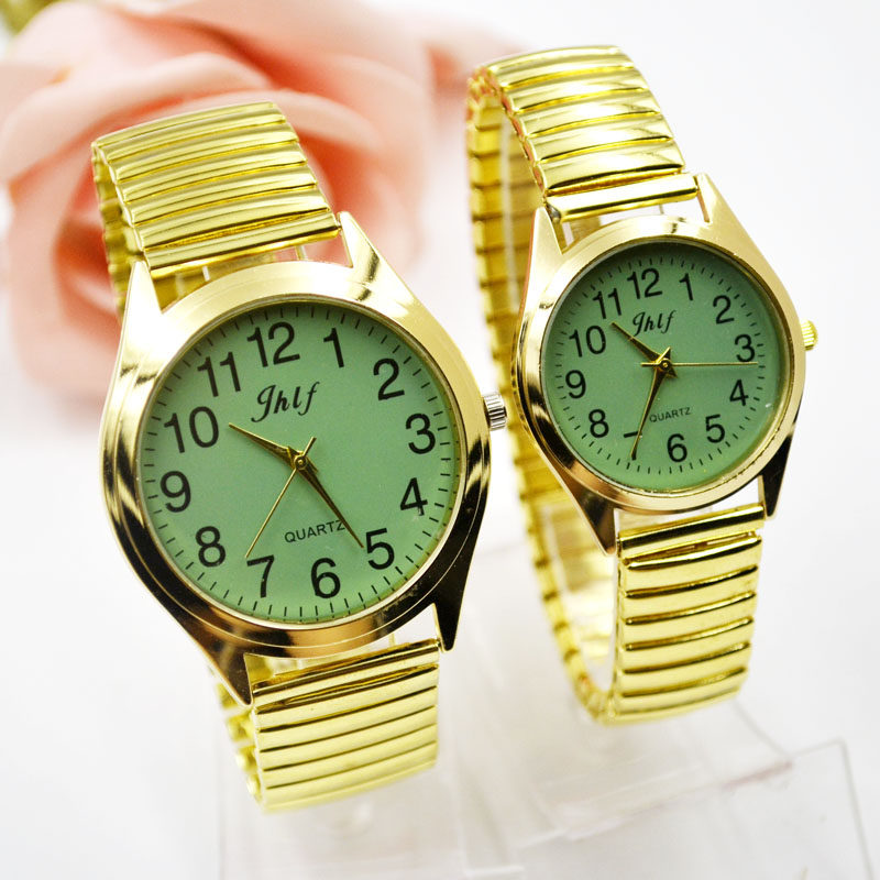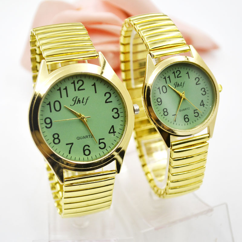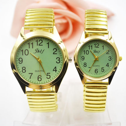 大数字石英表钢带弹簧松紧弹力表带男士中老年手表女士老人表