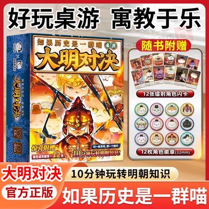 如果历史是一群喵大明对决桌游全套16正版如果西游是一群喵亲子游戏12张镭射角色闪卡12枚角色徽章儿童益智书10分钟玩转明朝知识