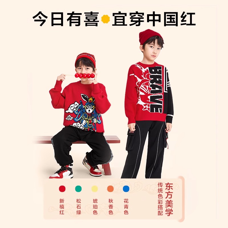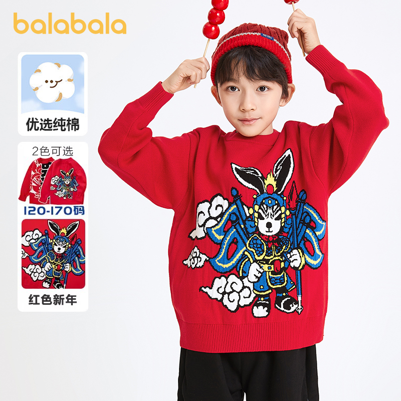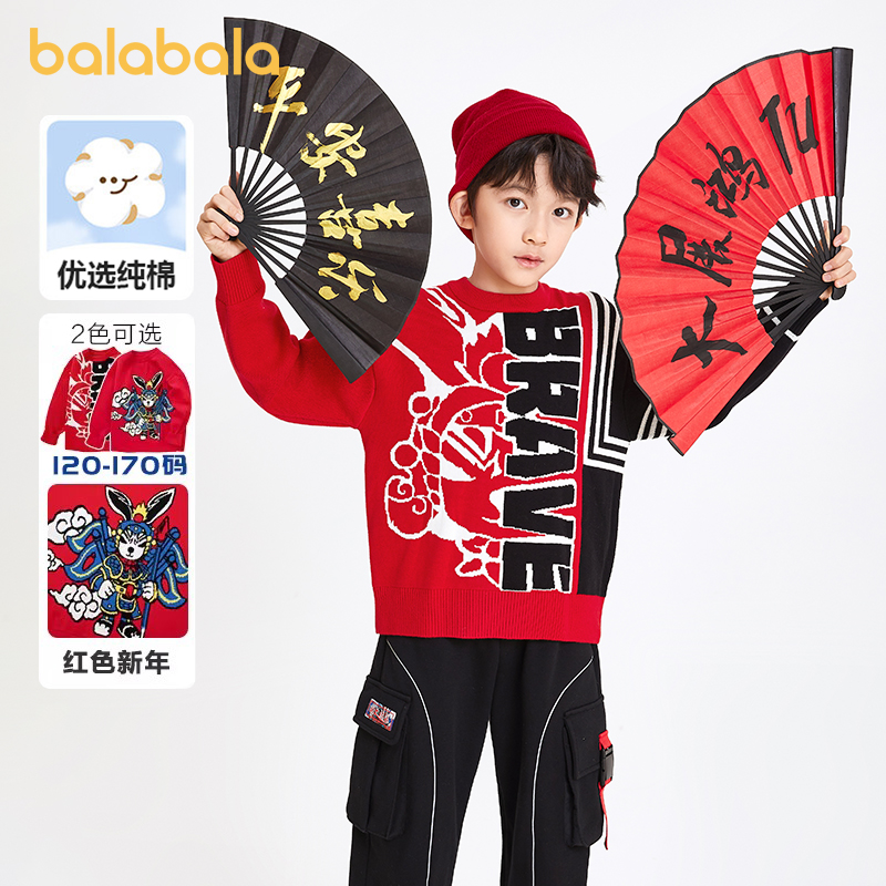 巴拉巴拉男童毛衣中大童红色针织衫打底衫秋冬新款童装儿童拜年服